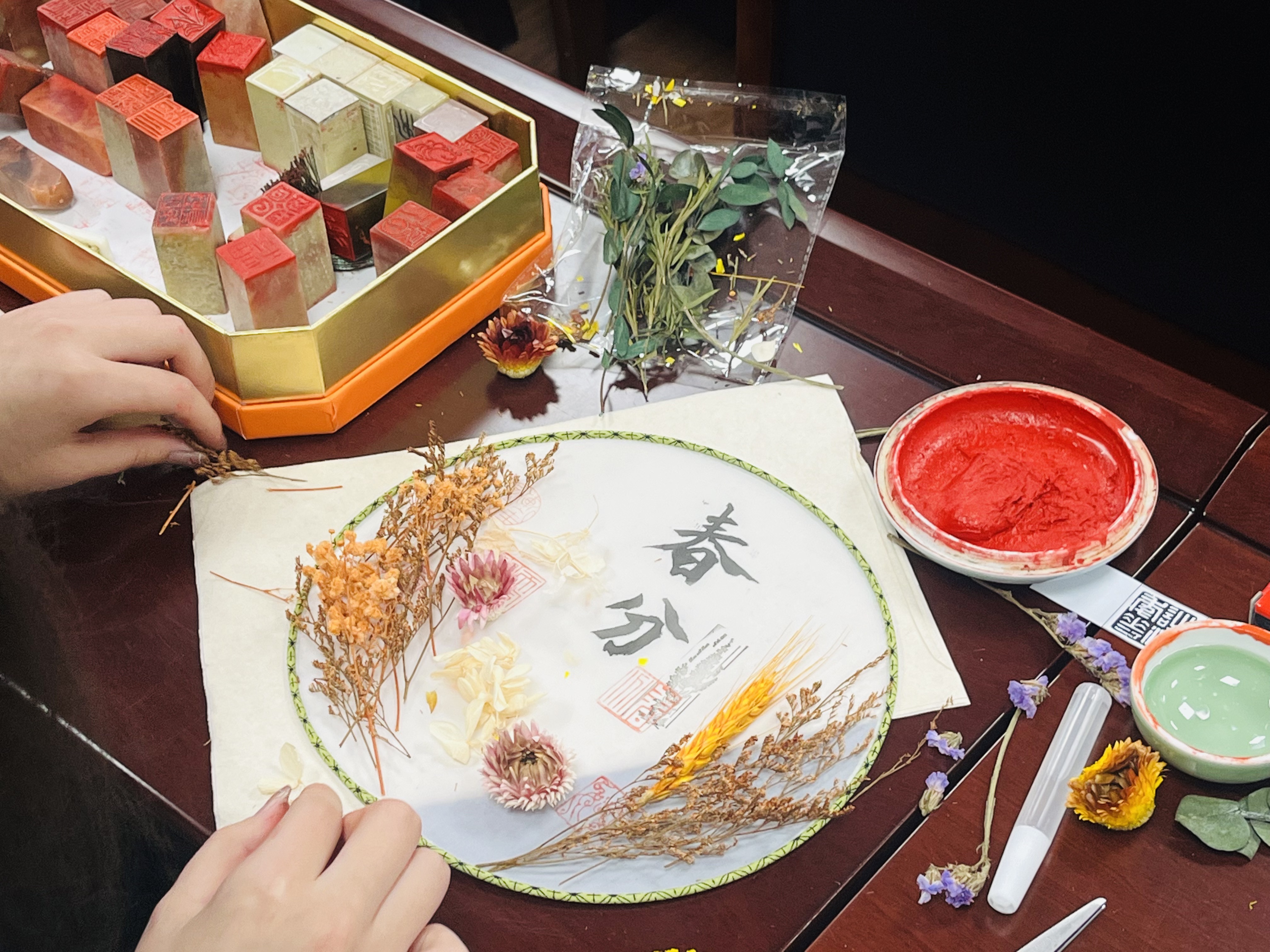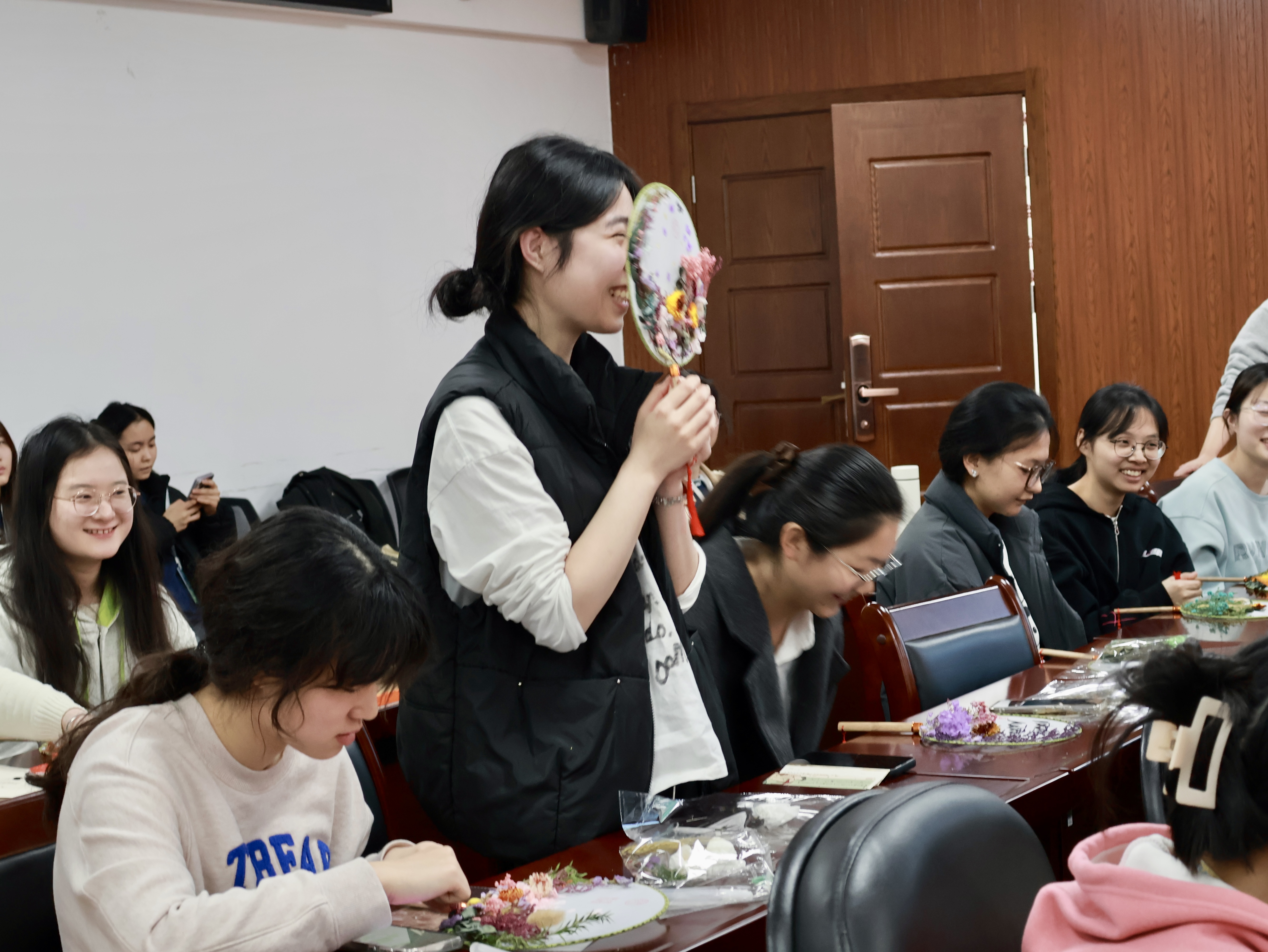 “等闲识得东风面,万紫千红总是春。”3月22日,正值二十四节气之春分时节之际,食品科学学院在一站式学生社区举办自然体验营“巧手生花,制扇至美”专场活动。本次活动吸引院内外自然体验营全体营员、研究生代表共计30余人参与。
