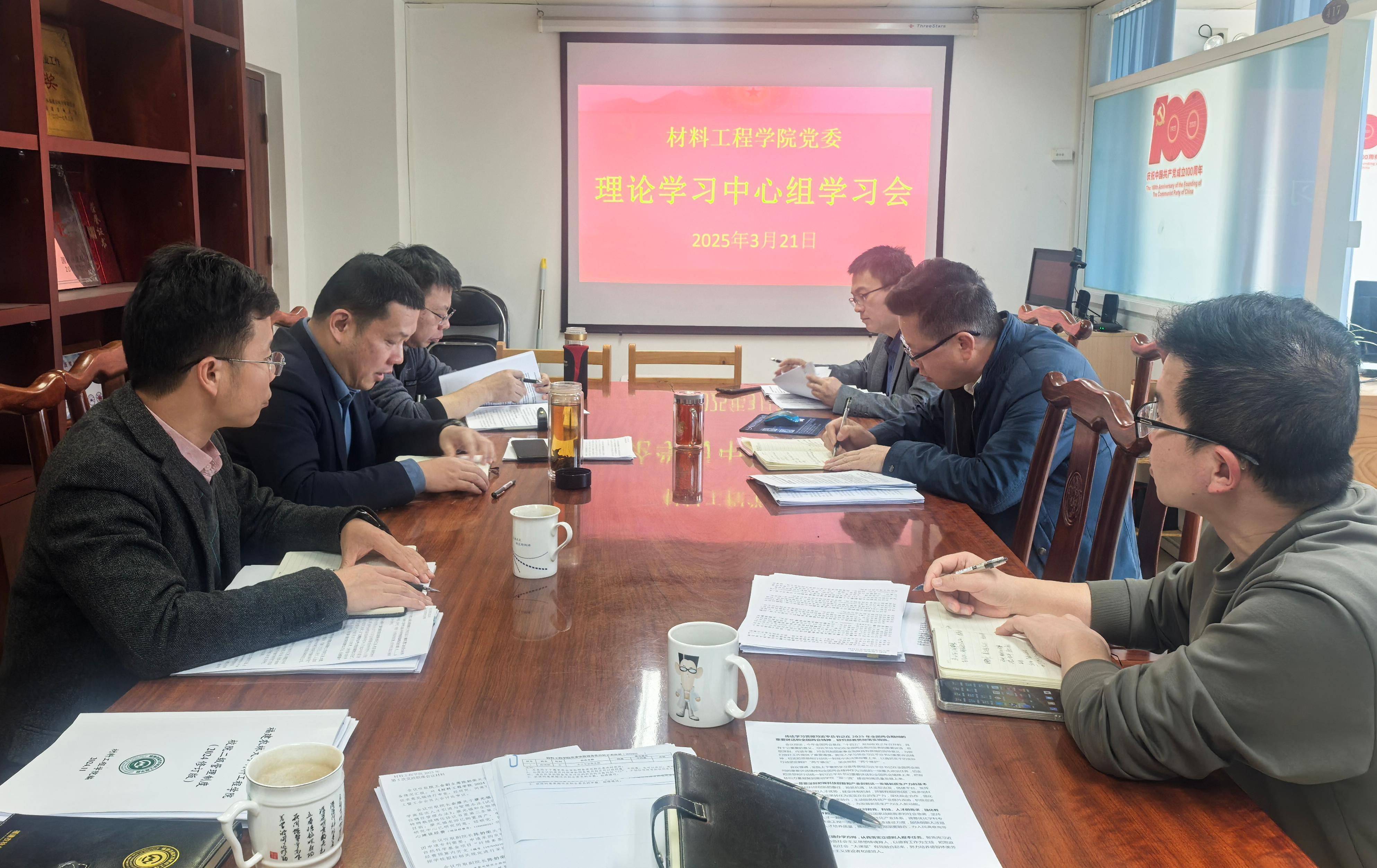 3月21日,材料工程学院党委理论学习中心组在旗山校区综合楼417专题学习贯彻习近平总书记在2025年全国两会期间的重要讲话和全国两会精神,研究部署贯彻落实意见;会议由院党委书记林豪森主持,院党委理论学习中心组成员参加学习会。学习会上,林豪森作主题发言,其他同志作交流发言。