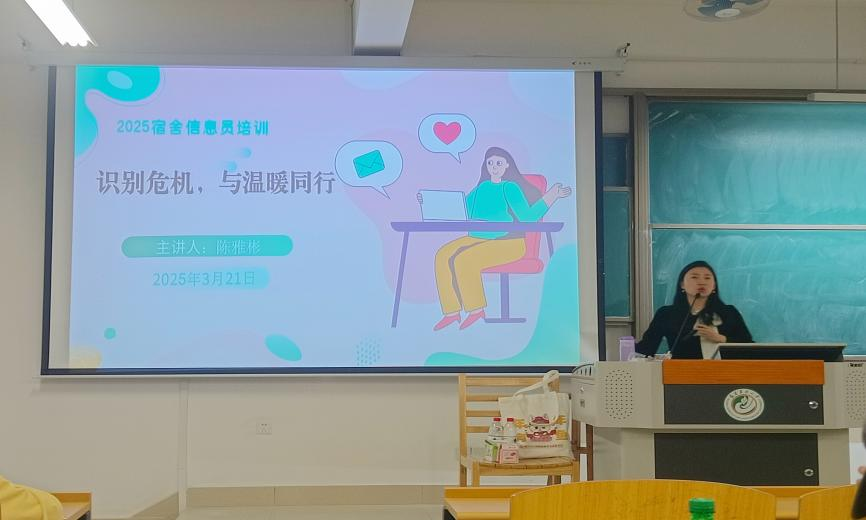 为进一步完善学院心理健康教育体系,织密心理危机预警网络,3月24日,材料工程学院举办“识别危机,与温暖同行”宿舍信息员专题培训会。本次培训特邀福建理工大学学生心理健康教育与发展中心副主任、国家二级心理咨询师陈雅彬老师担任主讲,全院280余名宿舍信息员参加培训。
