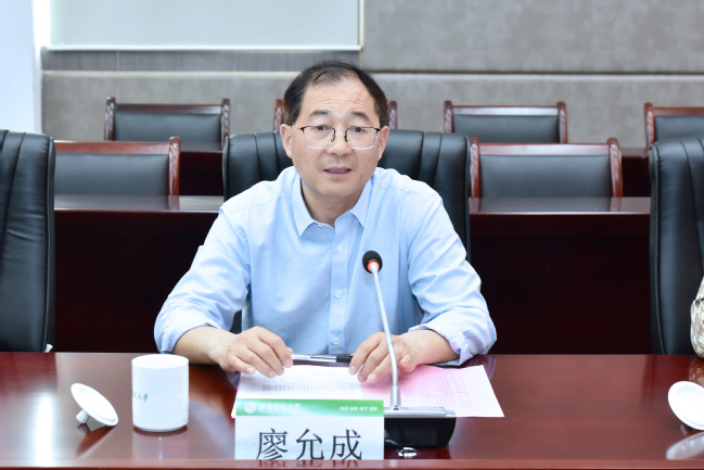 座谈中,赖海榕代表学校对廖允成一行的到来表示欢迎,感谢山西农业大学长期以来对学校的关心支持,并简要介绍了学校建设发展的基本情况。他表示,山西农业大学和我校同属涉农高校,渊源深厚、交往密切,山西农业大学近年来积极推进科教融合、产教融合,各项事业都呈现蓬勃发展的良好态势,希望双方以此次交流为契机,聚焦服务国家战略,进一步密切两校联系、发挥各自优势,深化学科建设、人才培养、科技创新等领域务实合作,共同推动两校“双一流”建设再上新台阶,为建设农业强国、全面推进乡村振兴作出新的更大贡献。