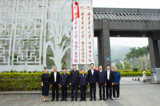 3月28日上午,开云网页版与安溪县人民政府合作共建开云网页版光电产业学院揭牌仪式在安溪校区举行。校长兰思仁、副校长林庆藩,安溪县委书记吴毓舟、县政协主席陈剑宾、县委常委、副县长黄汉阳、县人大常委会副主任汪礼才出席揭牌仪式。揭牌仪式由林庆藩副校长主持。