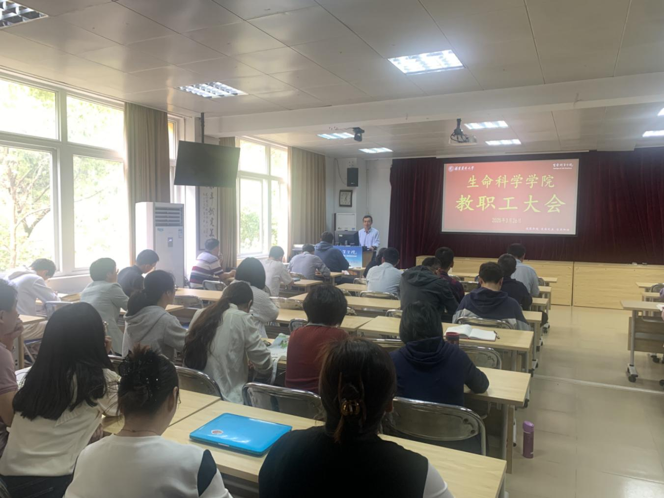 3月26日下午,生命科学学院在生科楼414召开教职工大会,学院党政领导班子及全体教职工参加,会议由院党委书记余顺兴主持。