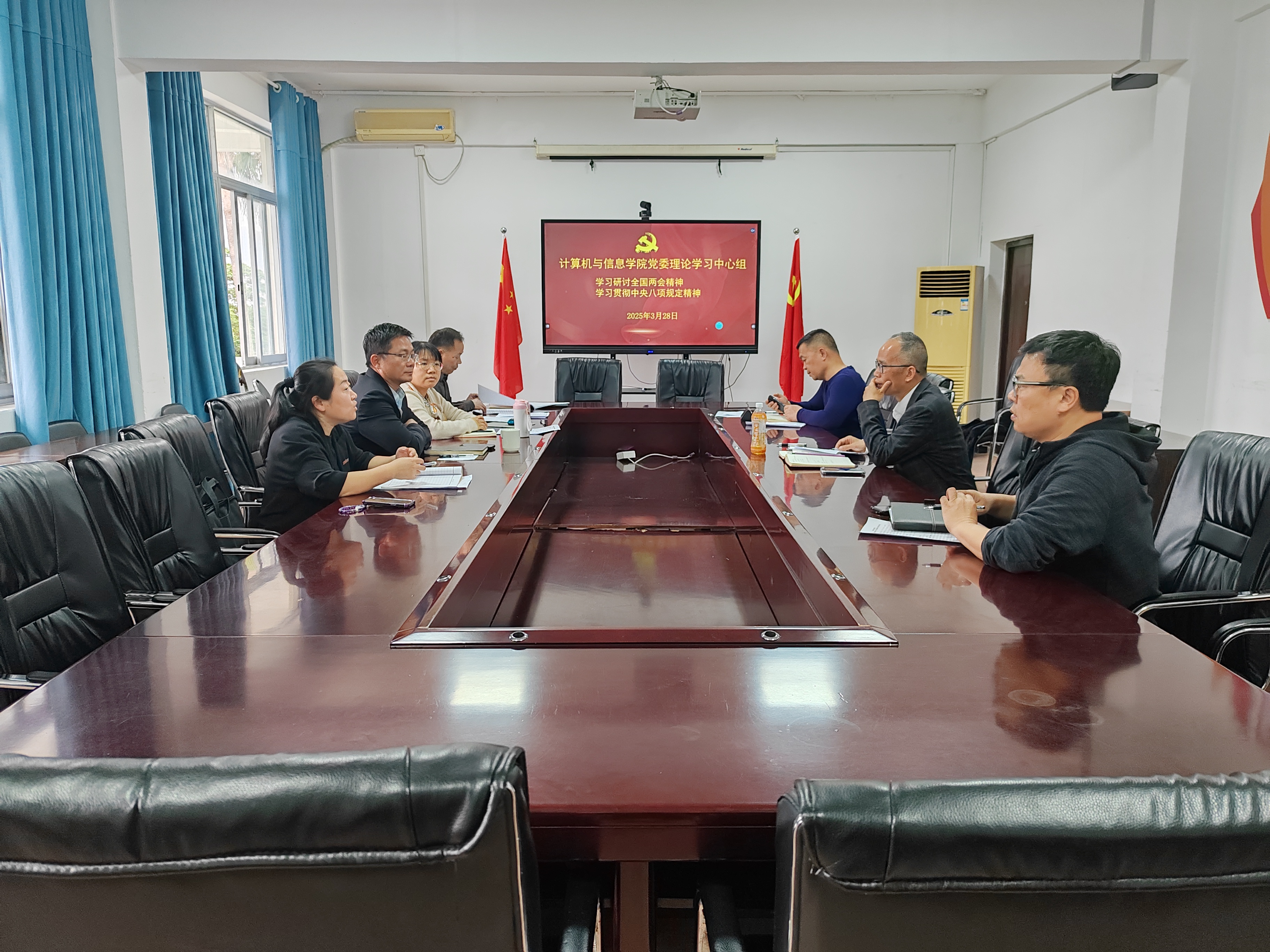 3月28日下午,计算机与信息学院党委理论学习中心组举行专题学习会,深入学习贯彻全国两会精神,集中研讨中央八项规定精神。全体理论学习中心组成员参加学习。会议由学院党委书记钟一文主持会议。