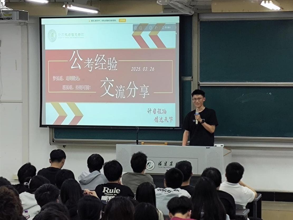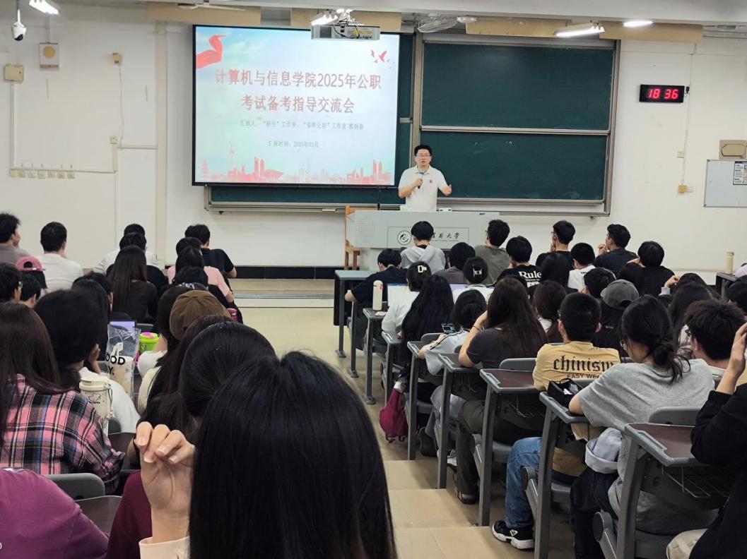 3月26日晚,计算机与信息学院在创新楼举办“筑梦起航”系列活动之公职考试交流会。交流会邀请材料工程学院郭炳春老师担任主讲,学院2025届毕业生分享考公上岸心得,2022级各专业130余位同学参加。