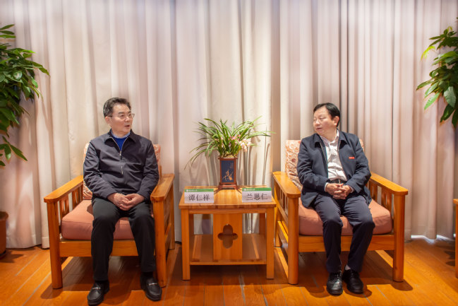 4月1日上午,中国植物学会副理事长、南京大学医药生物技术全国重点实验室主任谭仁祥来校交流,校长兰思仁在明德楼13层会客室会见客人。