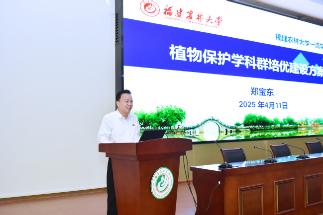 副校长郑宝东介绍植物保护学科群的建设构想、重点任务与主要举措