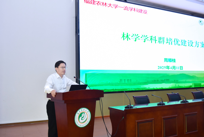 副校长周顺桂介绍林学学科群的建设构想、重点任务与主要举措
