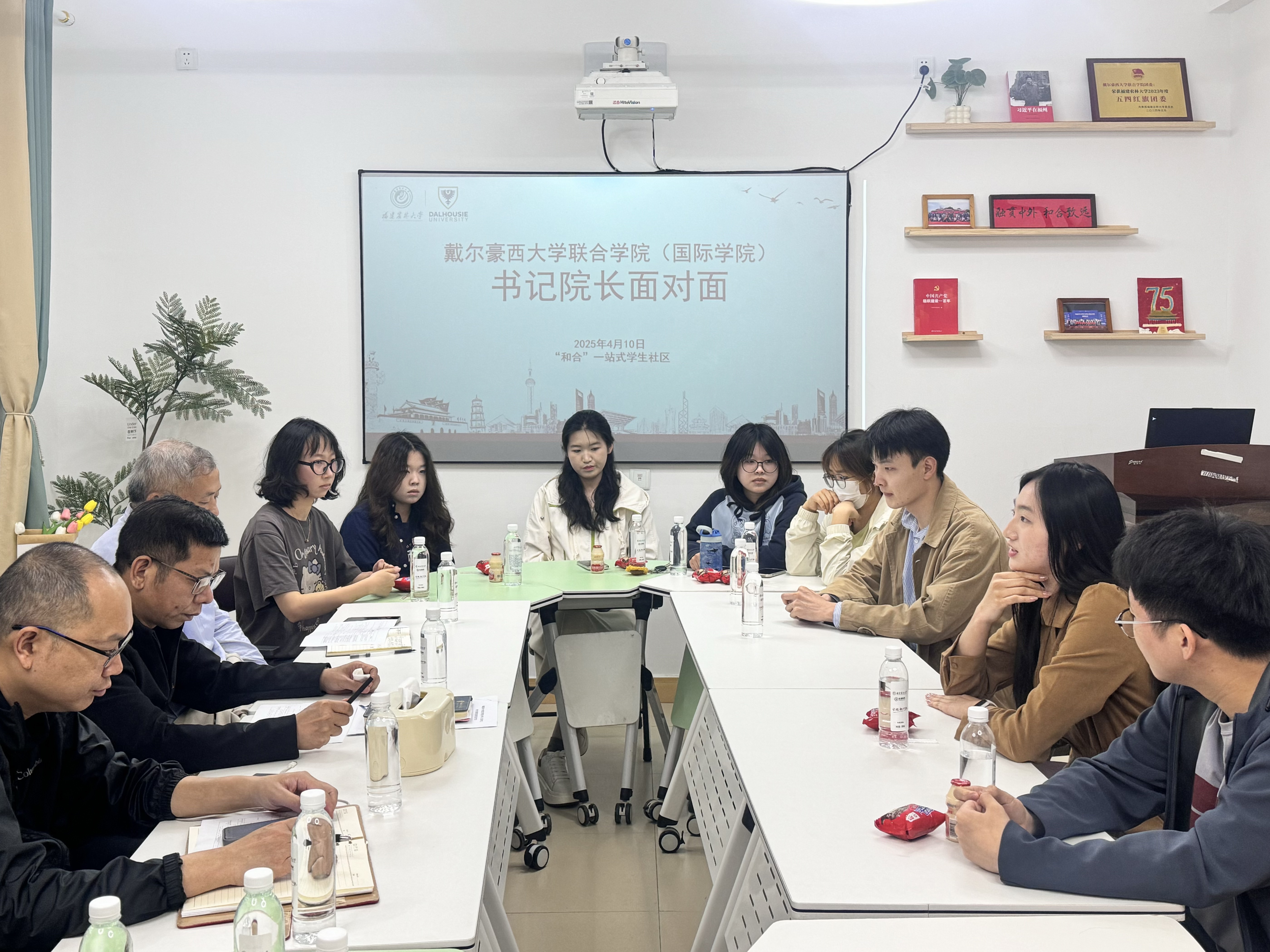 4月10日,开云网页版戴尔豪西大学联合学院(国际学院)在旗山一站式学生社区“和合”工作站开展“书记院长面对面”活动。学院党委书记林平、院长陈祖建、院党委副书记刘敏及分管辅导员出席,10余名不同年级、专业的学生参与。