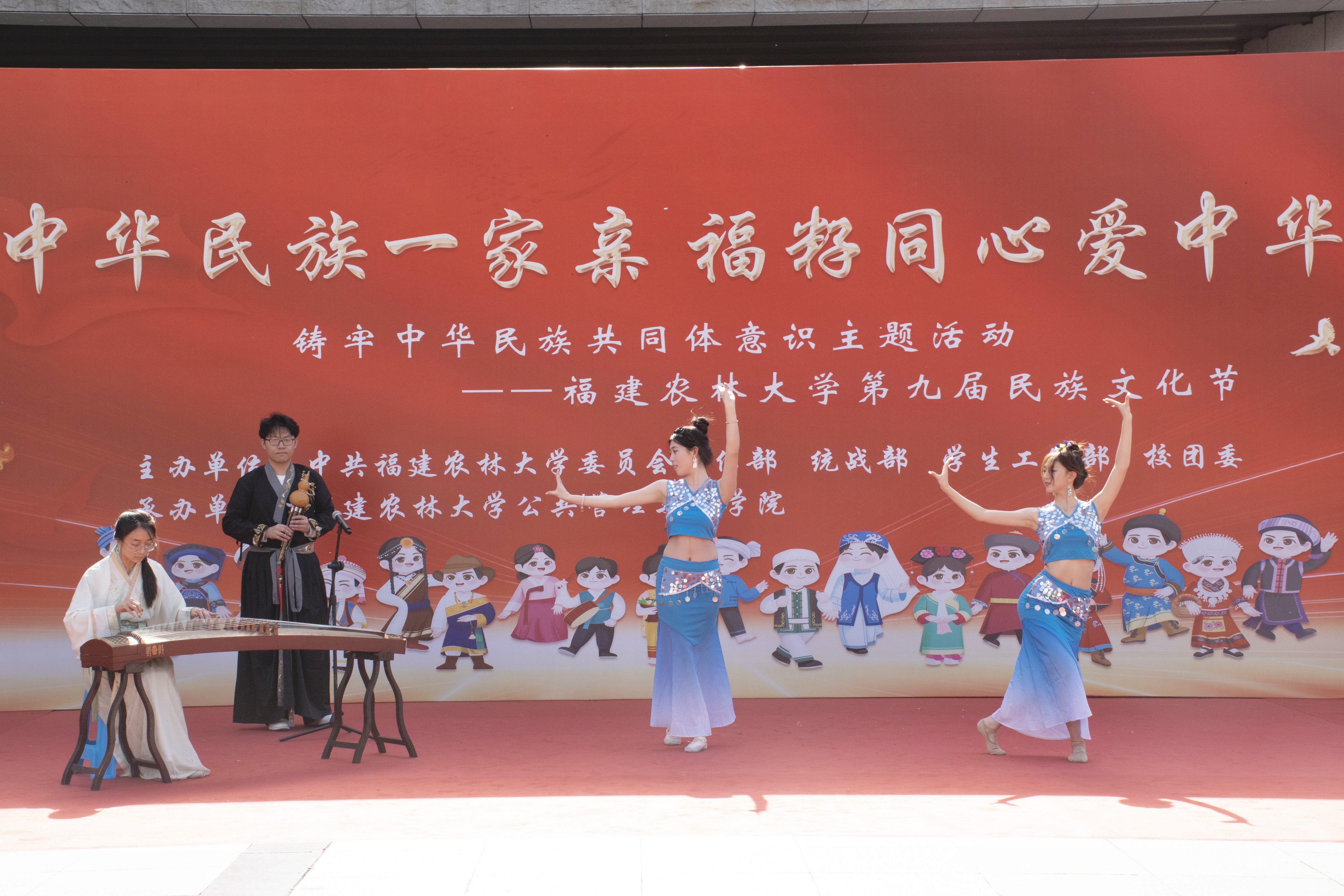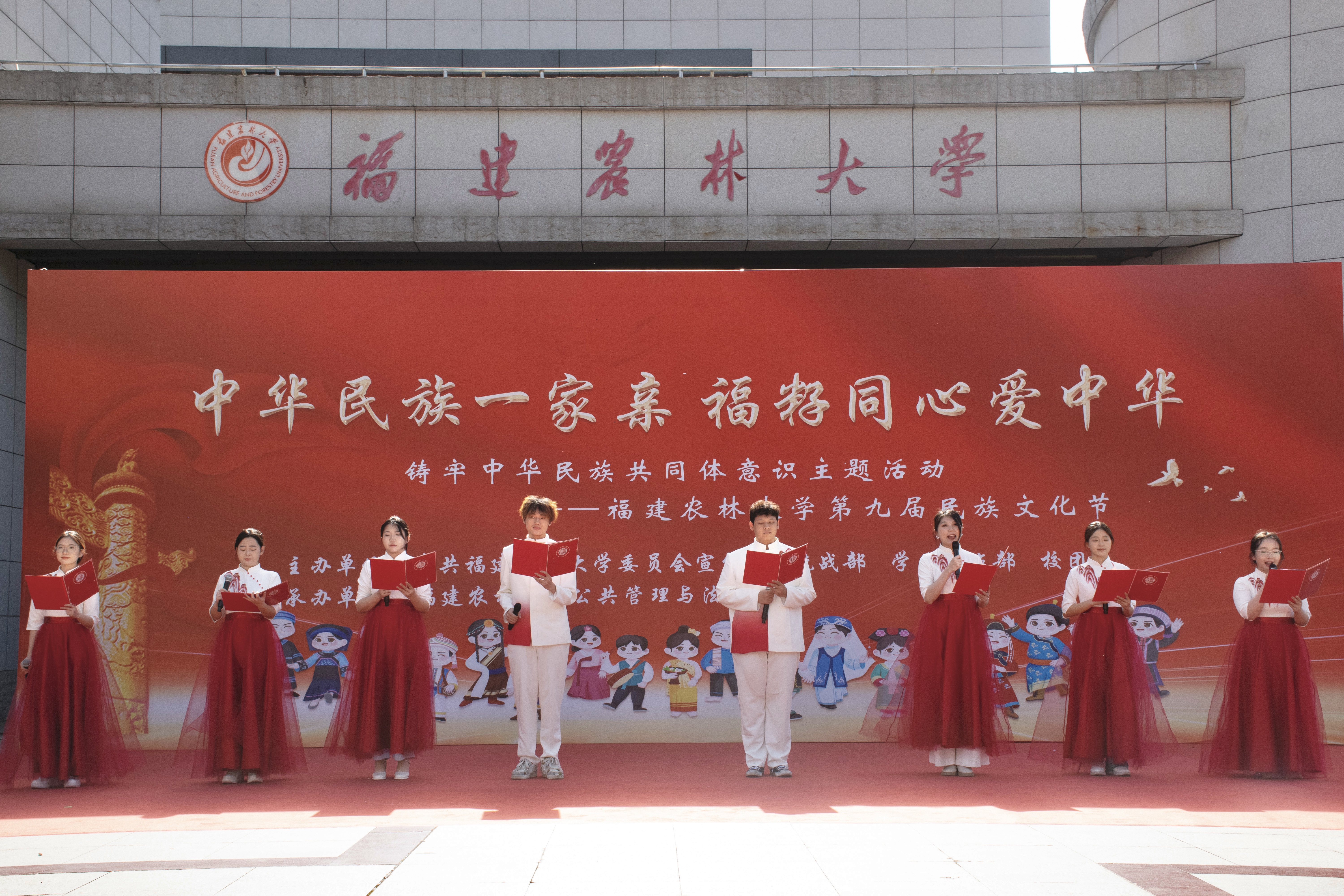 4月13日,由校党委宣传部、统战部、学生工作部、校团委主办,公共管理与法学院承办的“中华民族一家亲,福籽同心爱中华”第九届民族文化节在拓荒广场举办,吸引千余名师生参加。校党委副书记陈世奎,校党委宣传部、统战部、学生工作部、校团委及公共管理与法学院等单位负责人出席活动。