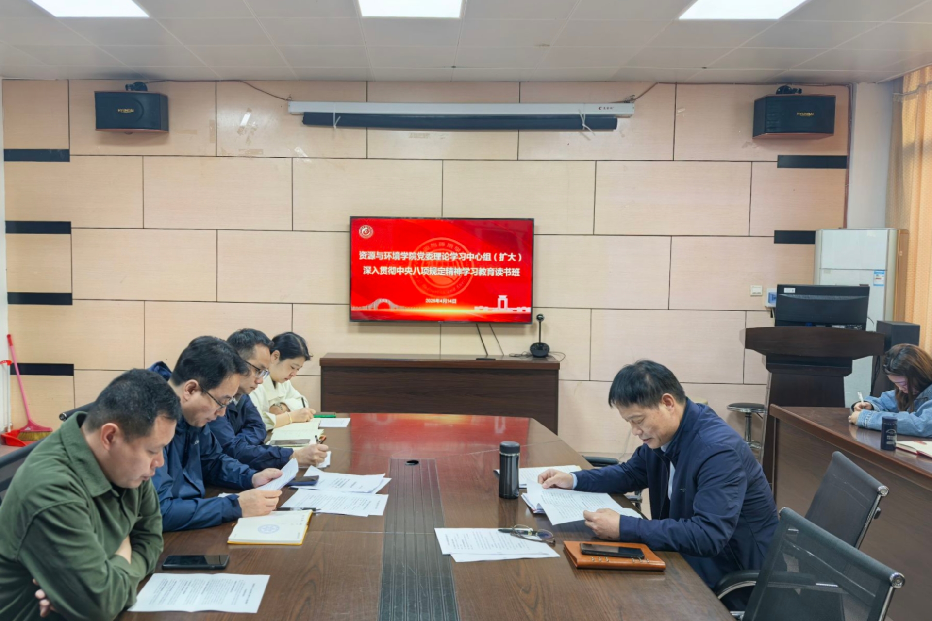 4月14日上午,资源与环境学院党委在博学楼210会议室举行深入贯彻中央八项规定精神学习教育读书班暨党委理论学习中心组学习(扩大)会。院党委班子成员、科级干部、党支书记代表参加会议。院党委书记曾起郁主持并作动员讲话。