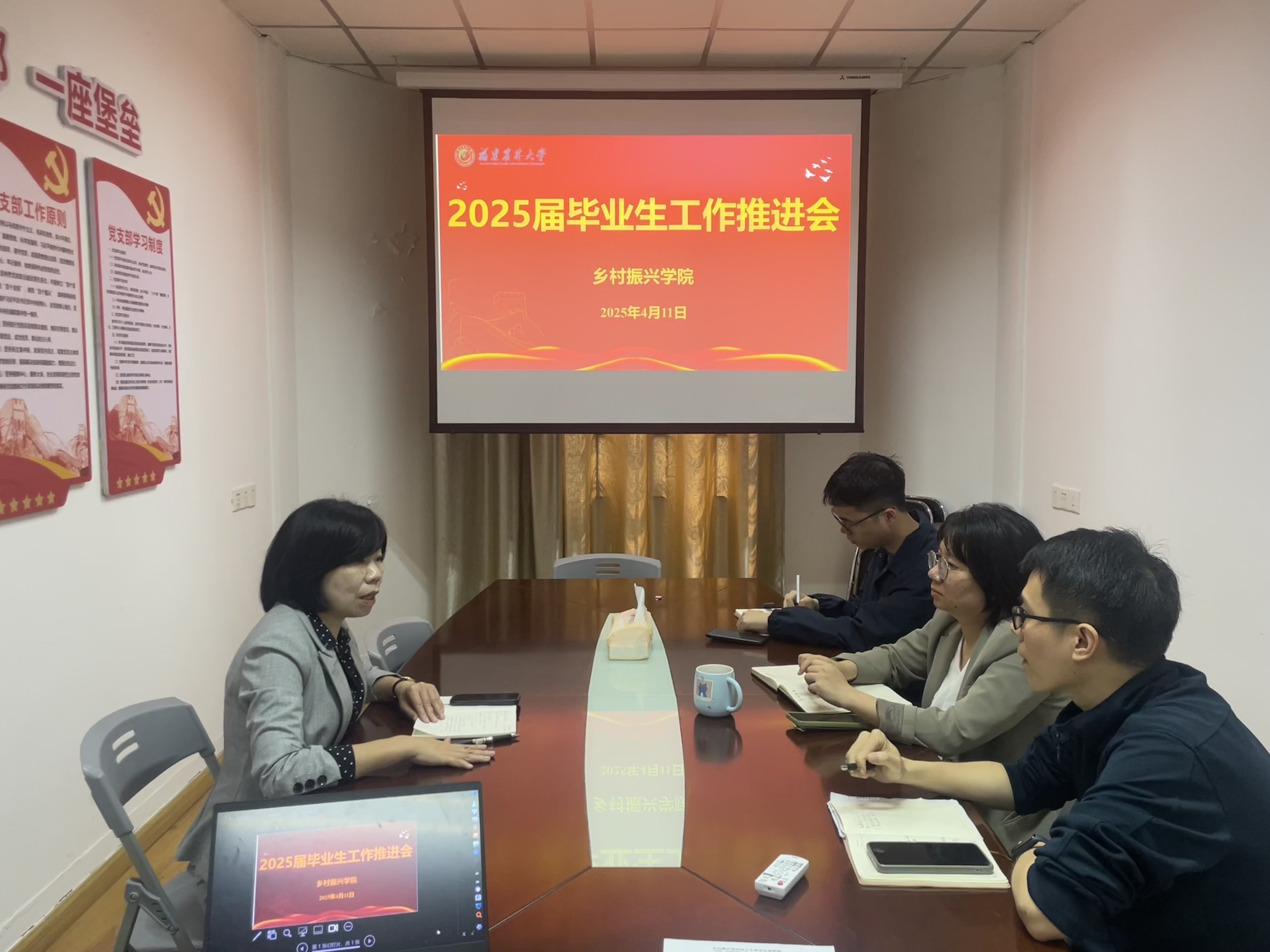 为深入贯彻教育厅、校党委关于推进2025届毕业生就业的决策部署,扎实推动毕业生高质量就业创业,4月11日上午,乡村振兴学院于院办205召开2025届就业创业工作推进会。学院党委副书记陈玲凤主持会议。