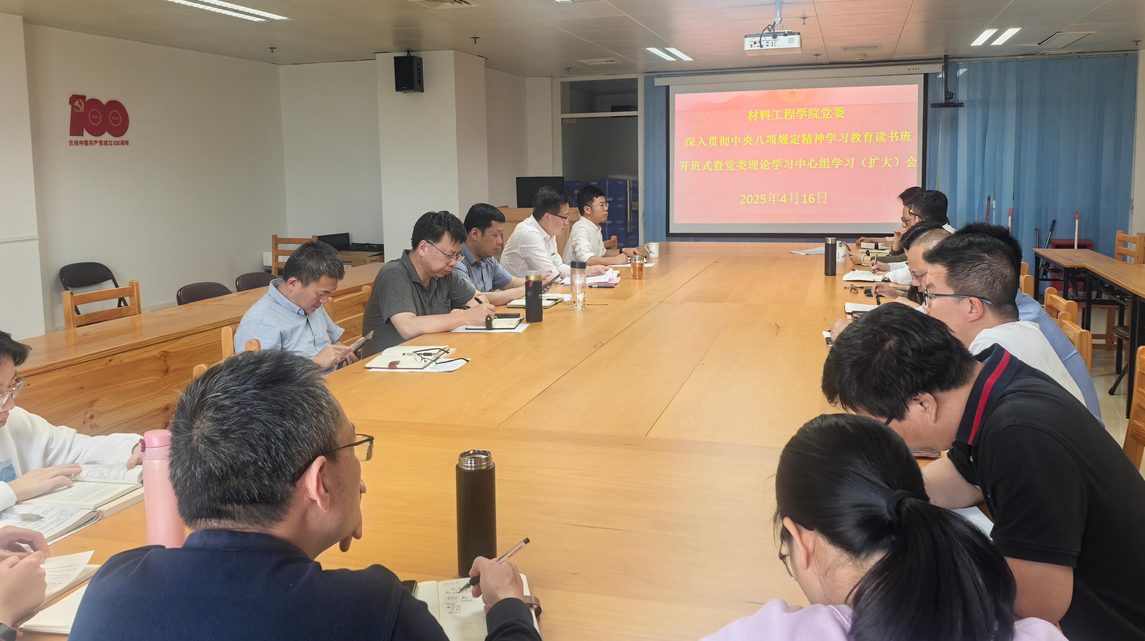4月16日,材料工程学院党委在旗山校区综合楼423举行深入贯彻中央八项规定精神学习教育读书班暨党委理论学习中心组学习(扩大)会,会议由学院党委书记林豪森主持并作动员讲话,学院党政领导、党委委员、纪委委员、科级干部、党支部书记出席学习会。