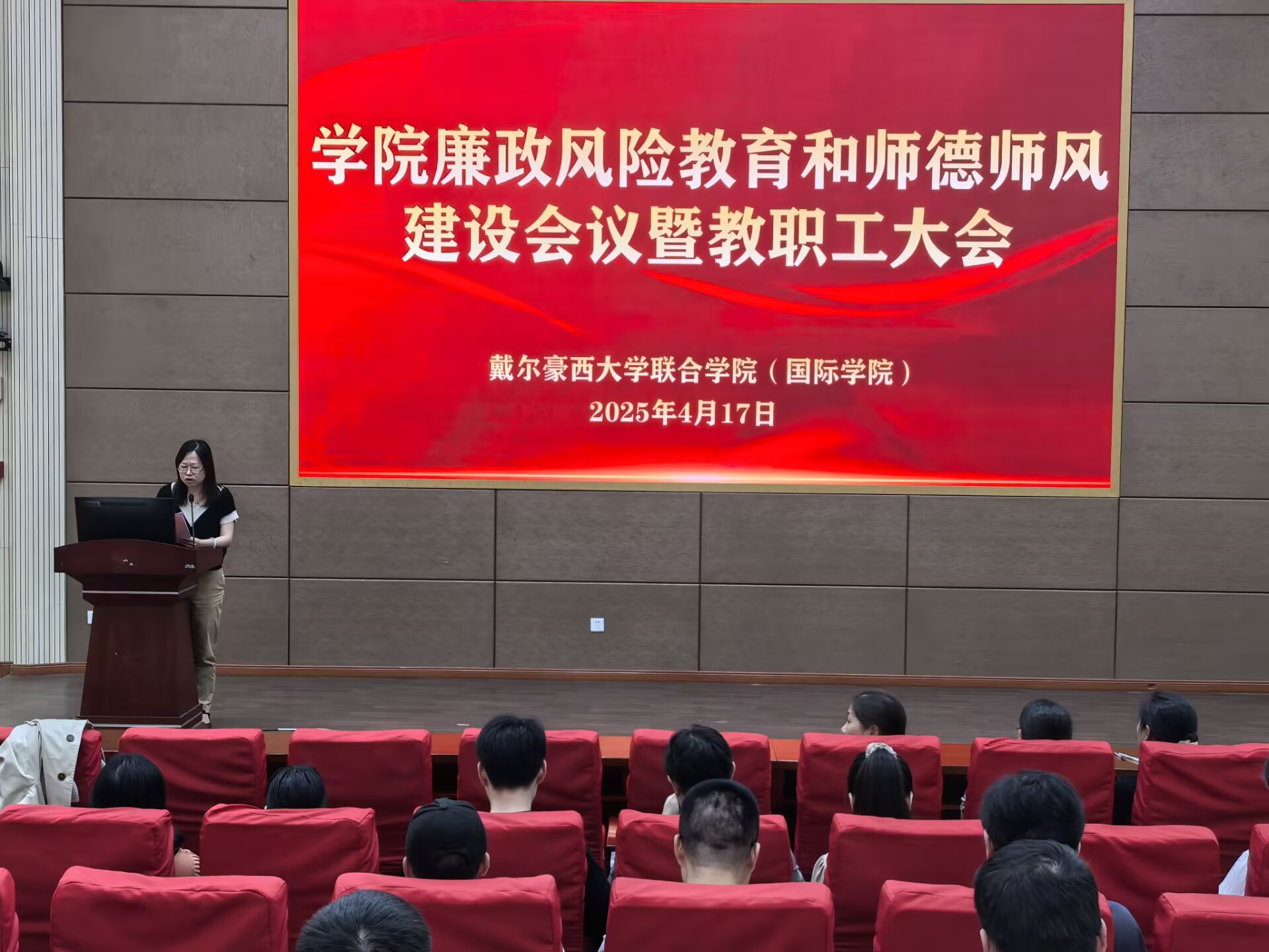 4月17日下午,戴尔豪西大学联合学院(国际学院)在旗山校区小报告厅召开学院廉政风险教育和师德师风建设会议暨教职工大会,全体教职工参加会议。