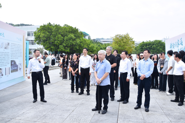 开场表演古筝齐奏《万物生》、佾舞《诗经·鹿鸣》于古典韵律中传递了天地秩序、中正和谐的儒家礼乐精神内涵。伴随着优美的韵律,校领导与师生共同步入展示区,沉浸式体验耕读文化体验项目。在耕读文化导论区,校领导听取耕读文化起源与内涵、耕读文化蕴含的儒家思想以及福建重要农业文化遗产介绍;在种业创新展示区,校领导聆听了兰花、藜麦等9个种业创新团队关于加强种质资源保护利用,攻克种源“卡脖子”技术难题,推动种业科技创新的研究进展与成效汇报;在土壤展示区,校领导近距离感受八闽土韵文化,了解我校师生服务土壤“三普”工作,推进土壤样品库数字化管理情况;在智慧农韵体验区,校领导观看了无人机、机甲大师、六足机器人、茶芽采摘机器人等智能农机装备,肯定我校师生以科技创新引领现代农业发展的担当作为;在农副产品加工技艺和福建非遗手工技艺区,校领导闻茶香、品茶韵,体验福州茉莉花茶窨制工艺、寿山石雕、软木画等福建省国家级非遗项目的精湛技艺和深厚文化底蕴,感受重要农业文化遗产在校园的传承与保护。
