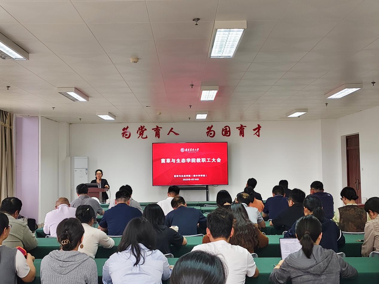 4月16日下午,菌草与生态学院在金综楼B401会议室召开全院教职工大会,传达学校奋进“双一流”工作第三次推进会精神,全体教工参加会议。会议由学院党委书记陈月霄主持。