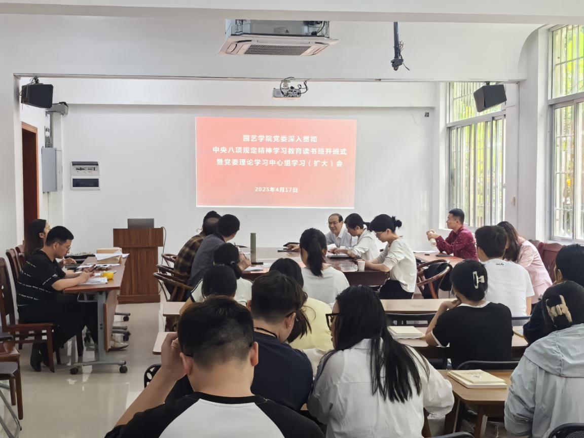 4月17日下午,园艺学院党委在园艺学院会议室举行深入贯彻中央八项规定精神学习教育读书班开班仪式暨党委理论学习中心组学习(扩大)会。学院党委书记林金科主持会议,学院党委委员、纪委委员及党支部书记参加了会议。