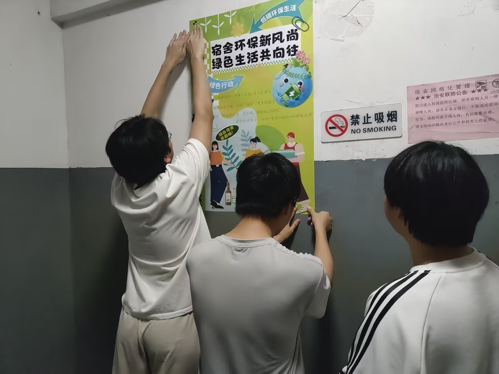 此次活动以宿舍为单位,围绕宿舍安全、节能环保及宿舍风采主题,融入计信院特色,同学们充分发挥创意,从构思到绘制,倾注热情与巧思。设计完成后,学院督导部以宿舍楼道作为育人新阵地,将原本普通的楼道用海报巧妙布置为流动的德育画廊。这些作品不仅展现了同学们的艺术才华,更将学院特色与文明理念深度融合,如同无声的宣传员,向过往同学传递积极的生活态度与文明风尚。