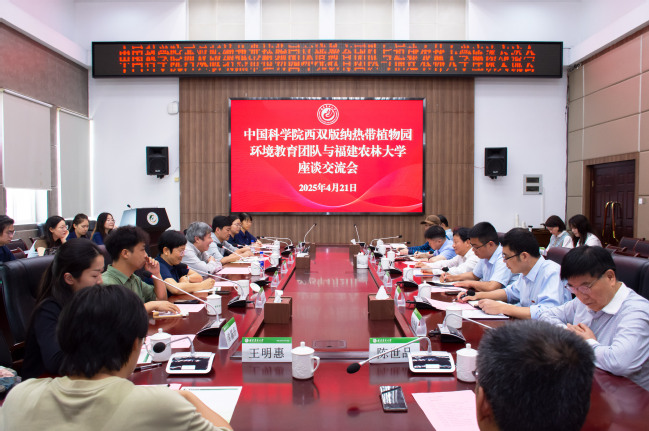 4月21日上午,中国科学院西双版纳热带植物园环境教育首席科学家陈进、环境教育中心副主任(主持工作)刘光裕等一行14人来我校调研并推进合作事宜,校长兰思仁在明德楼武夷厅与客人一行座谈交流。