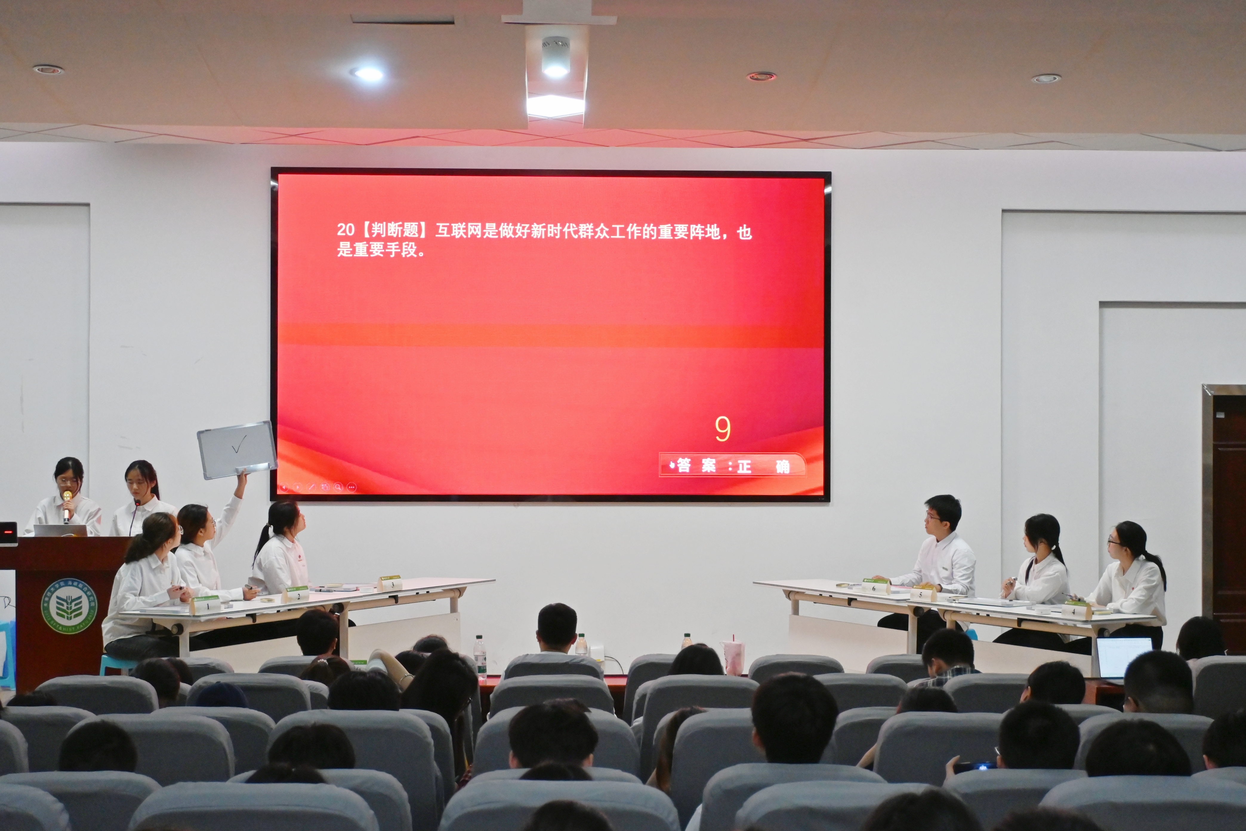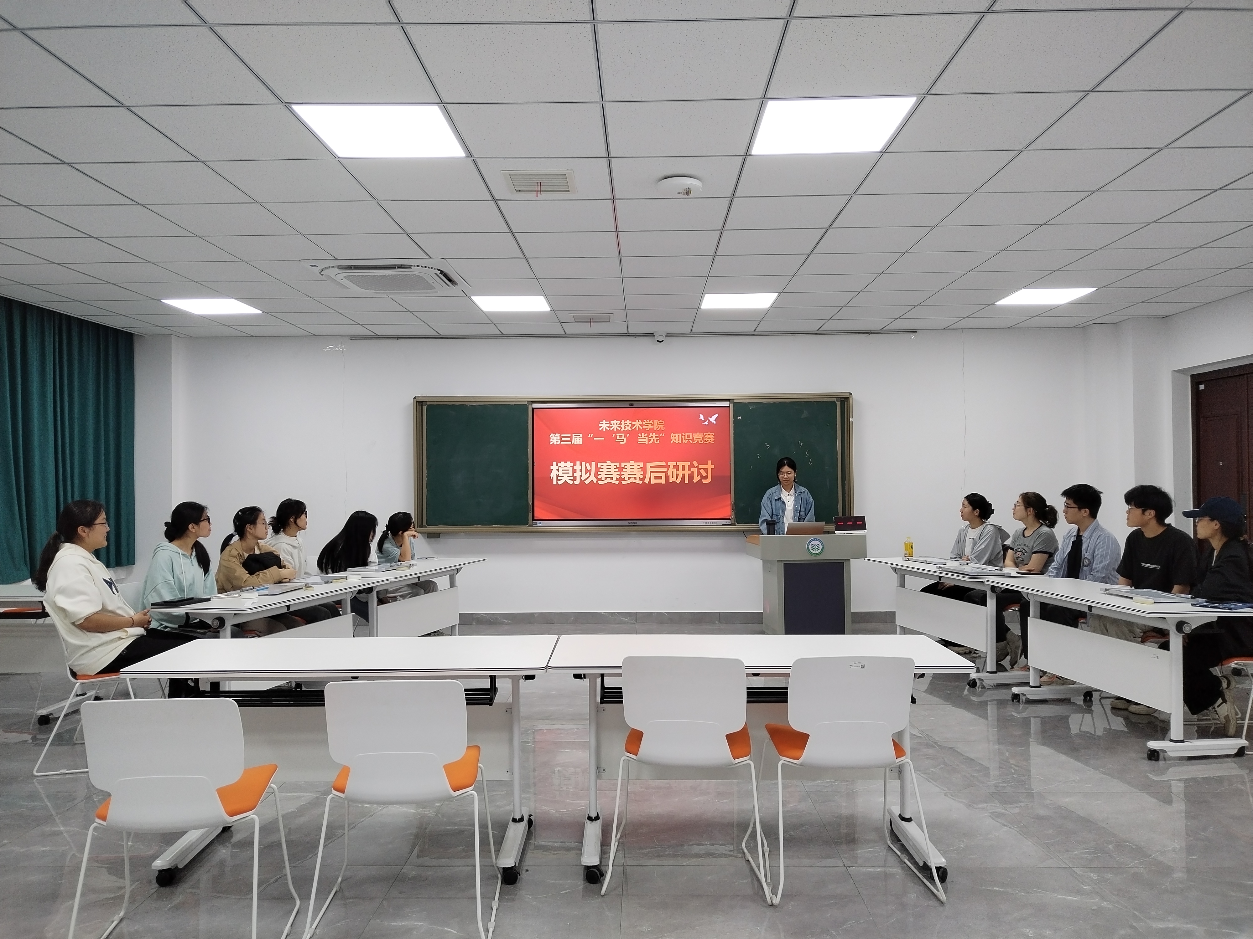 为全面学习贯彻全国教育大会精神,深入学习贯彻习近平总书记关于青年工作的重要思想,未来技术学院于4月17日晚在未来学术报告厅举办第三届大学生学习马克思主义理论“一‘马’当先”知识竞赛,院党委副书记潘守彬、全体辅导员出席,百余名学生现场共同见证这场融合智慧碰撞与青春风采的理论盛会。