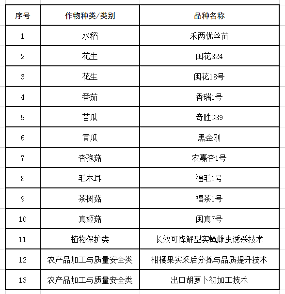 入选2025年度福建省农业主导品种和主推技术清单