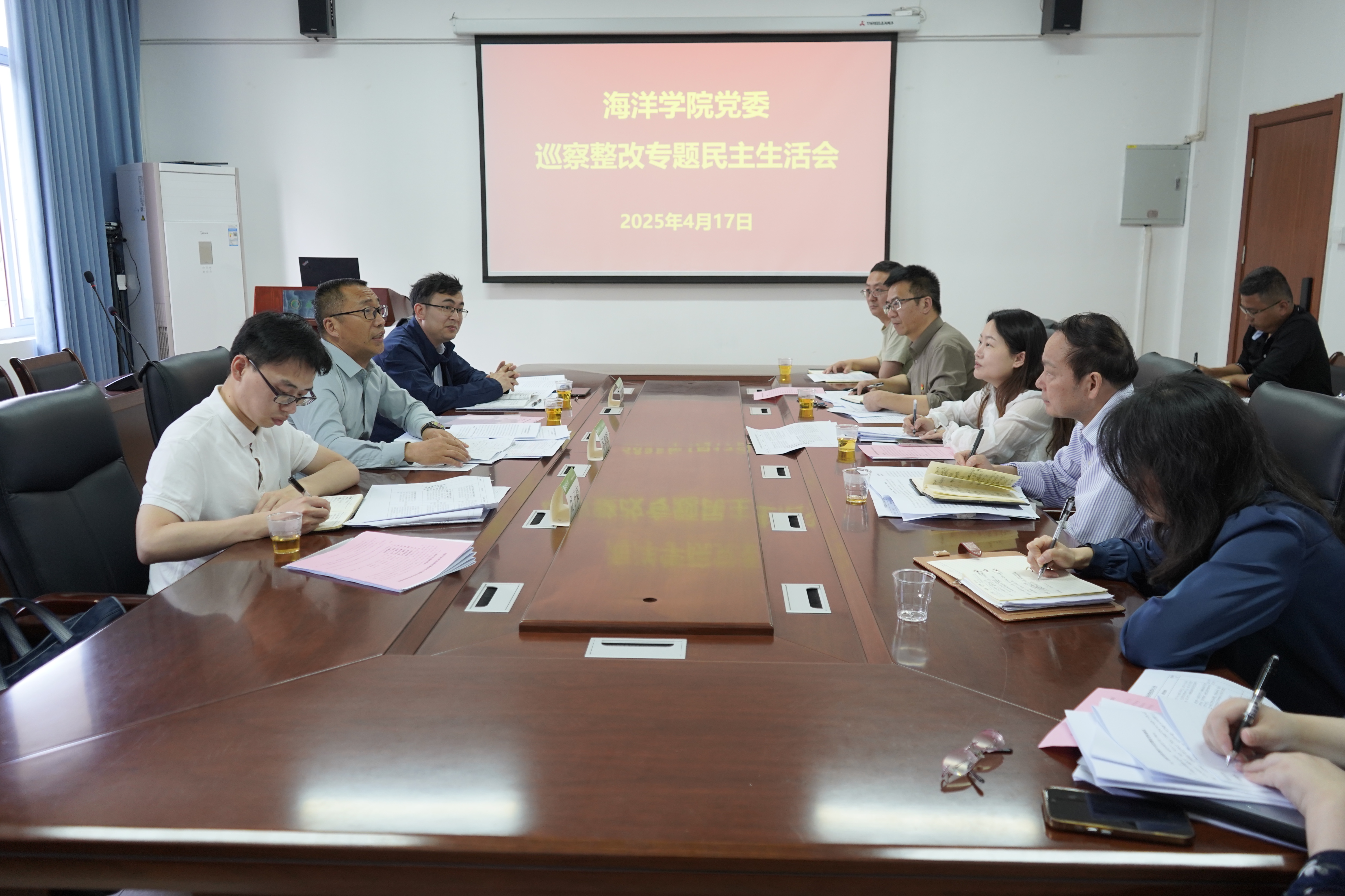 4月17日上午,海洋学院党委在海洋学院501会议室召开巡察整改专题民主生活会。审计处副处长杨朝晖、校党委巡察办副主任吴雄强、校党委巡察办综合科庄子豪莅会指导。学院党委班子成员参加,非中共党员的领导班子成员、系主任、科级干部等列席会议。会议由学院党委副书记(主持工作)郑亚凤主持。