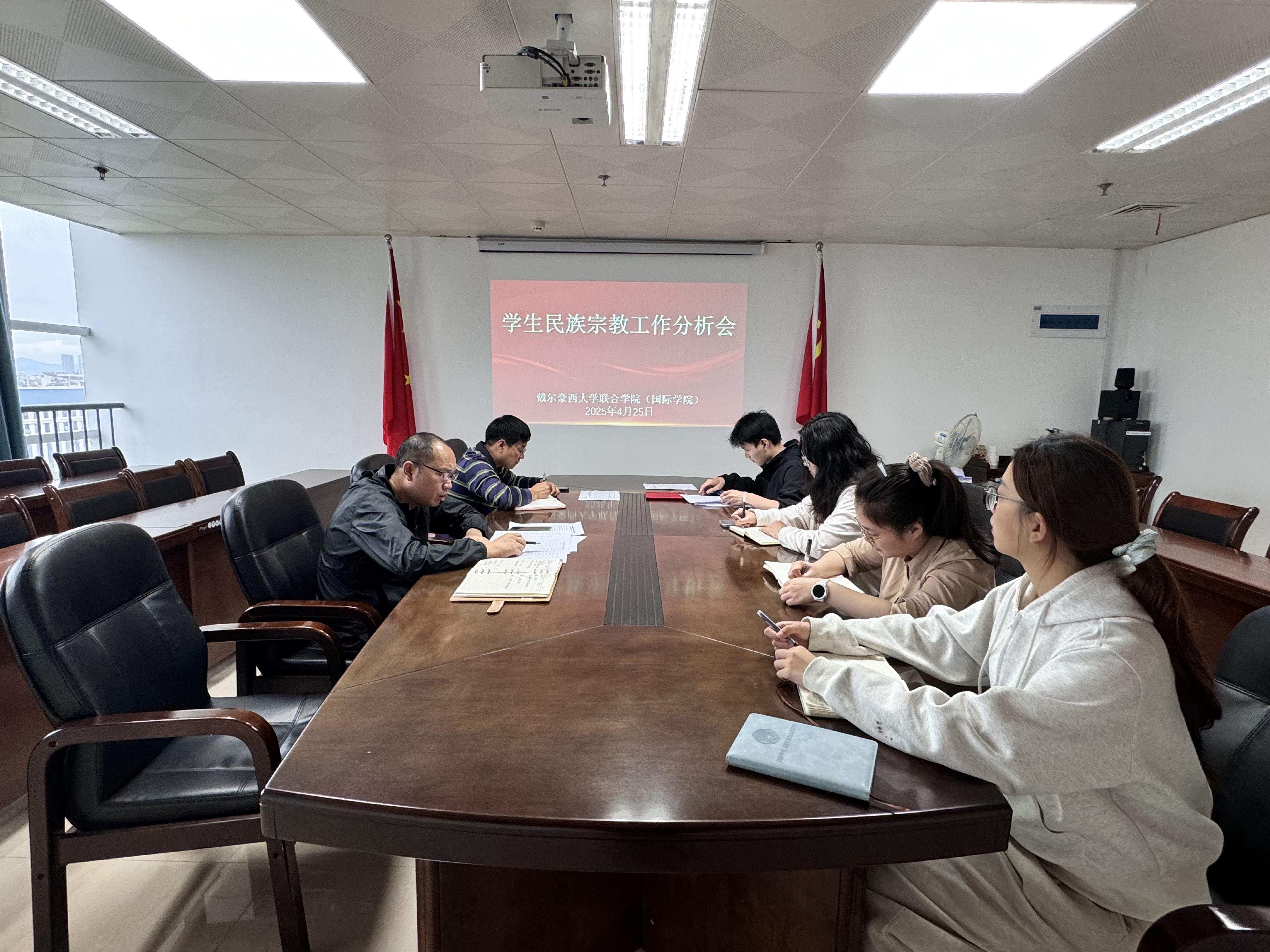 4月25日,戴尔豪西大学联合学院(国际学院)在综合楼901会议室召开学生民族宗教工作分析会,学院政工干部参加会议。此次会议旨在结合学院办学实际,深入分析春季学期以来学生民族宗教工作情况,努力为筑牢校园意识形态安全防线打下坚实的基础。
