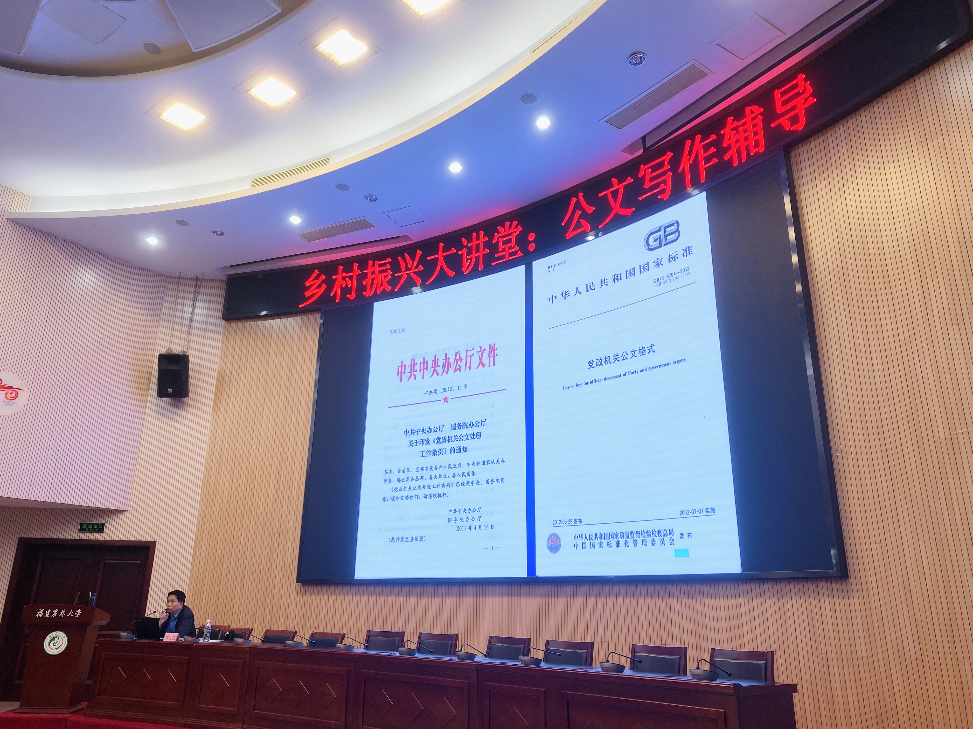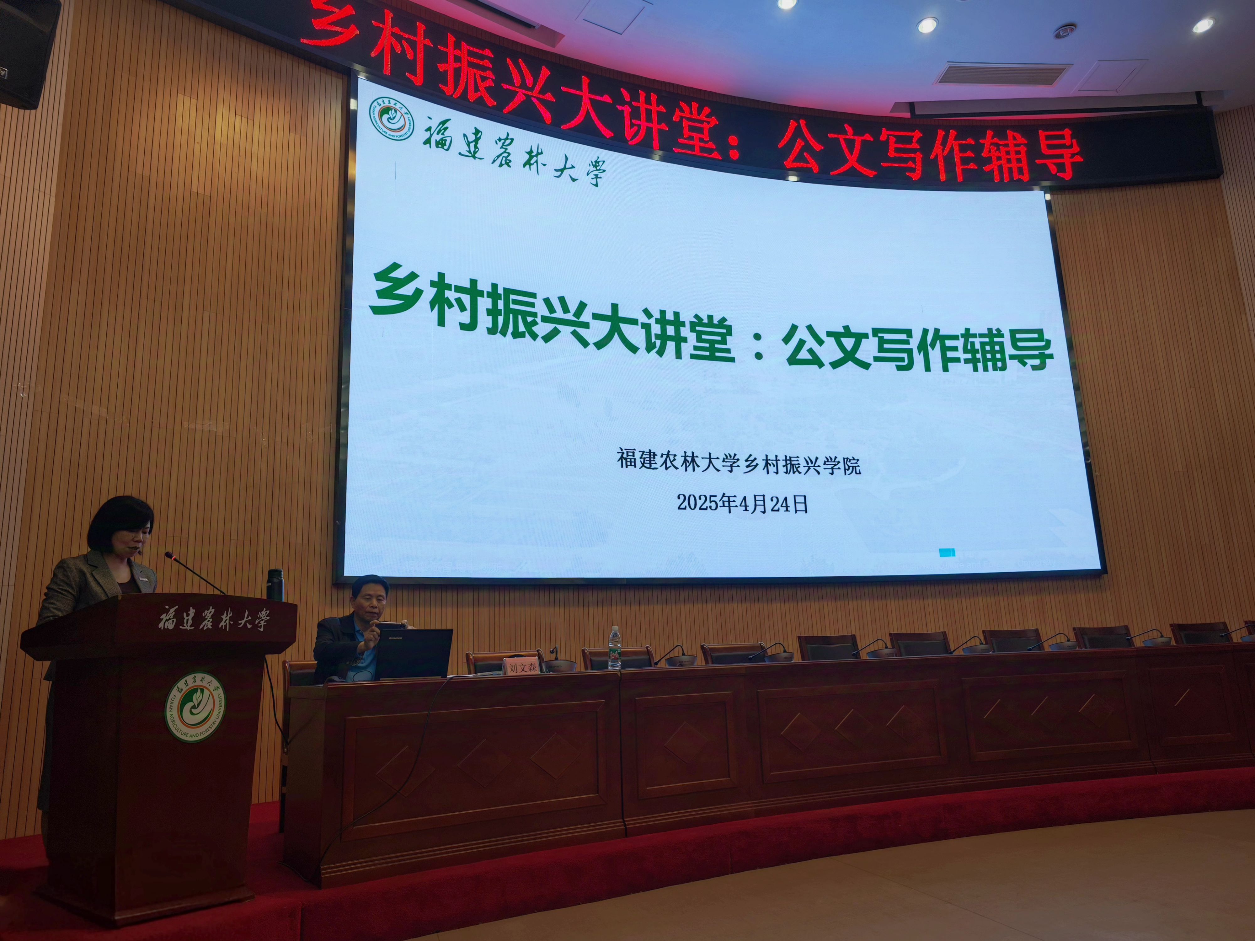 4月24日下午,乡村振兴学院在博学报告厅举办乡村振兴大讲堂:公文写作辅导讲座。本次活动邀请福建省委办公厅原副巡视员刘文森担任主讲嘉宾,讲座吸引校内200多名师生报名参加。讲座由学院党委副书记陈玲凤主持。