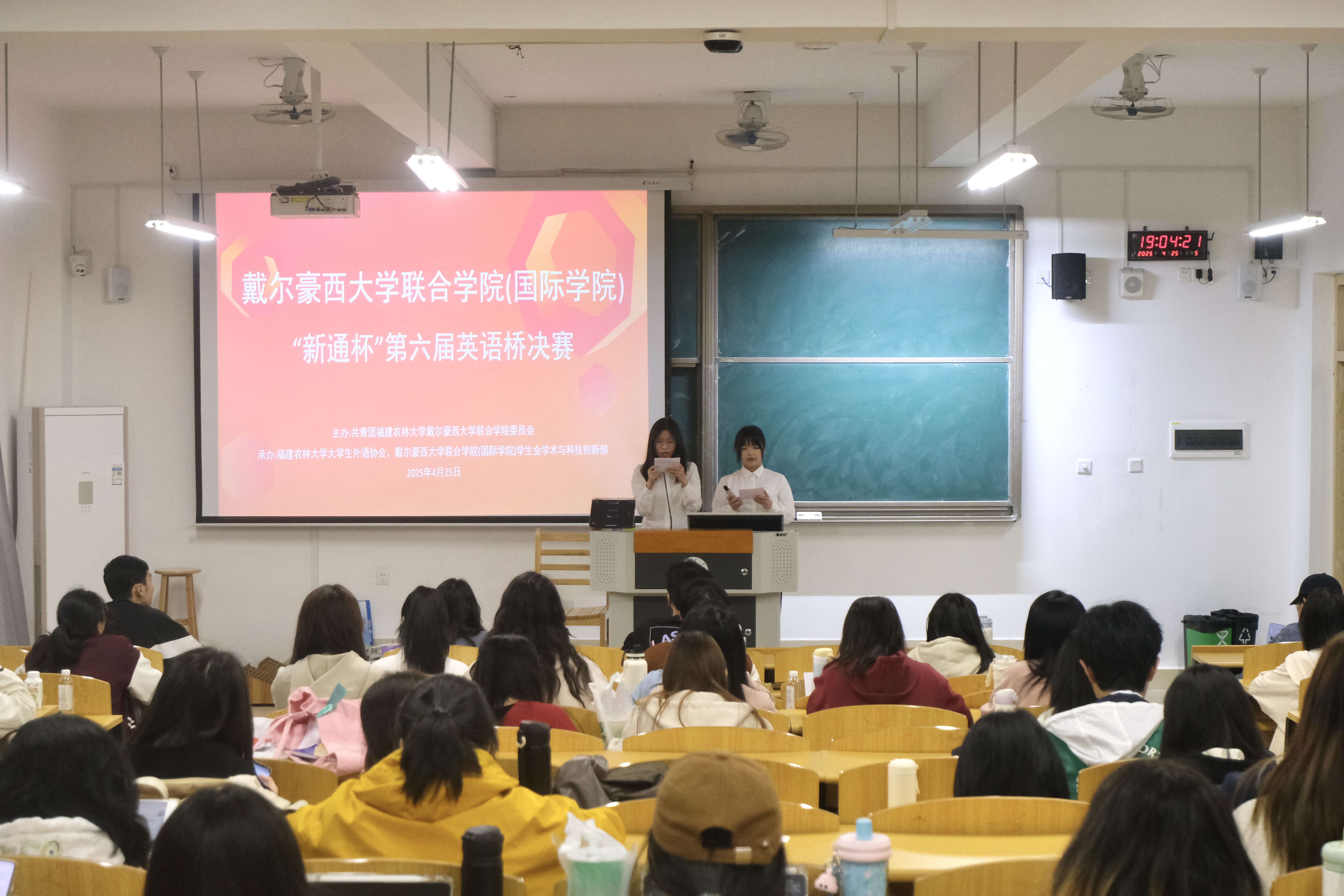 4月25日晚,戴尔豪西大学联合学院(国际学院)在旗山校区教学实验楼201教室举办“新通杯”第六届英语桥比赛决赛。比赛特邀新通教育教师费昕悦、学院公共外语系教师黄青青、外语系教师向琴作为评委,百余名学生参加。