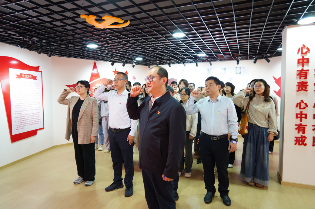 在庄严的党旗下,全体党员高举右拳,重温了那句字字千钧的入党誓词,再次感受那份沉甸甸的责任与使命。