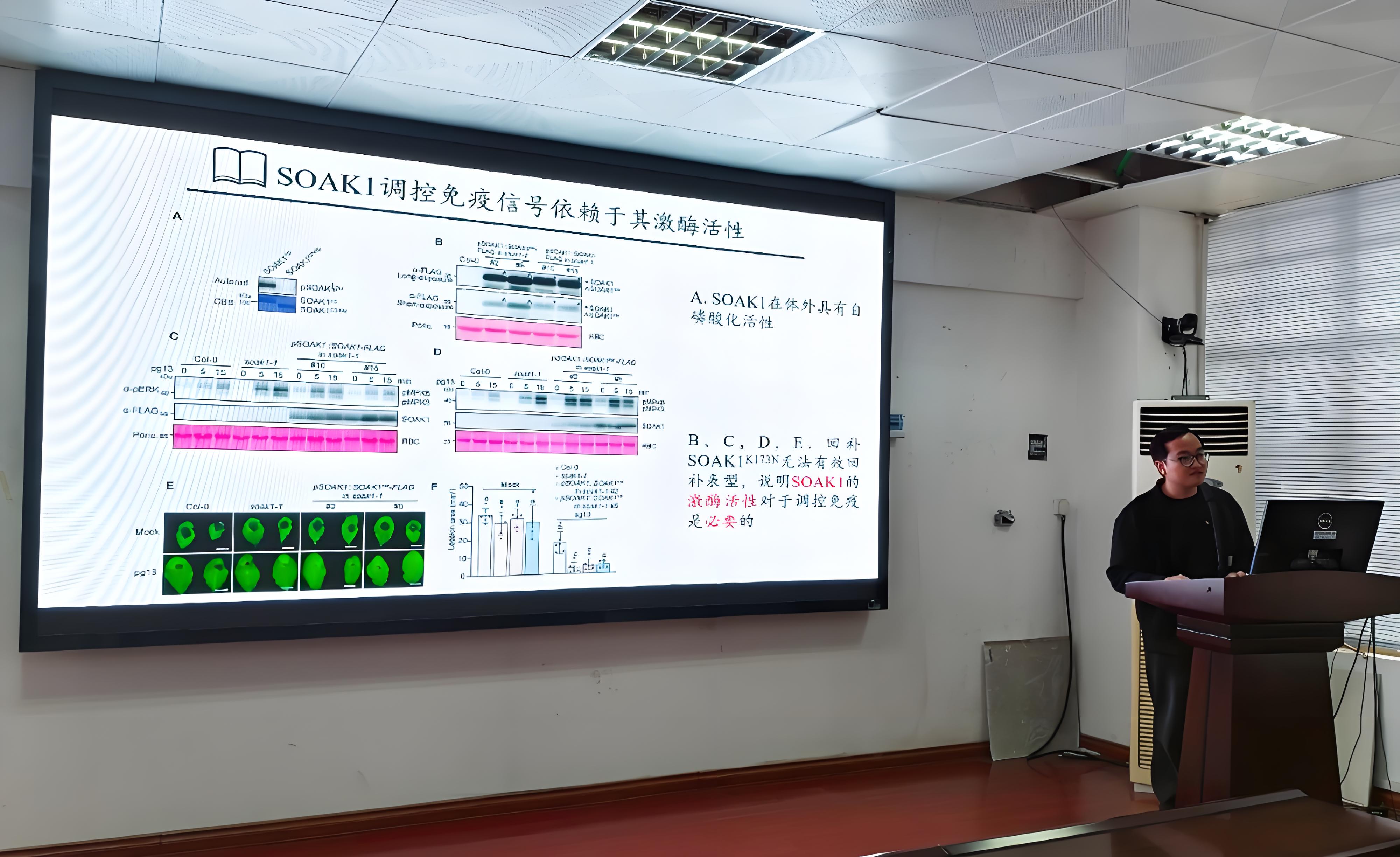 中国农业大学博士陈永明以“免疫共受体SOBIR1与感病基因调控机制研究”为题,分享了其在植物免疫领域的突破性发现。他揭示了SOBIR1活性抑制机制及水杨酸信号通路调控抗病性的分子机理,相关成果发表于《Science Advances》《The Plant Cell》等顶级期刊。
