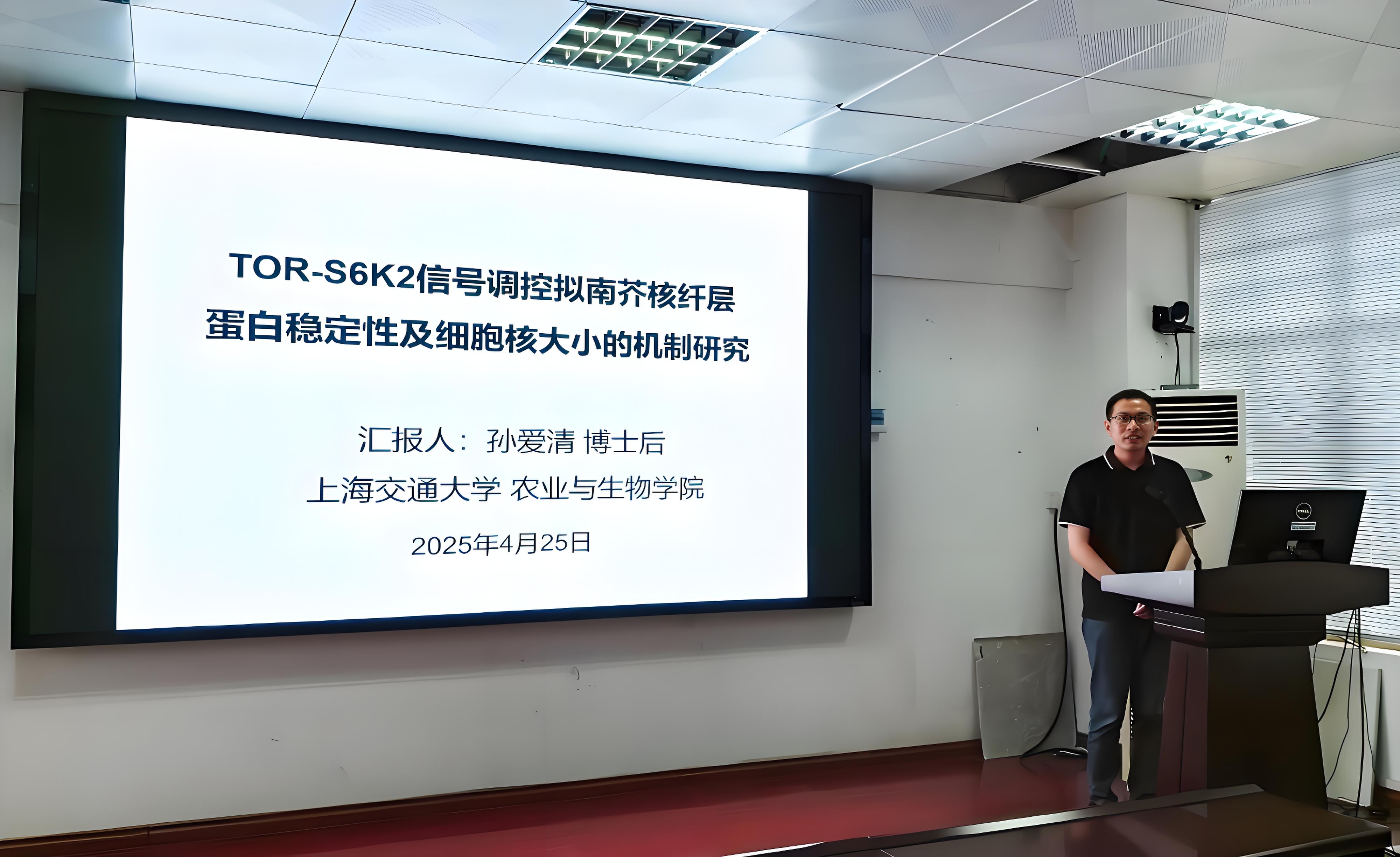 上海交通大学农业与生物学院博士后孙爱清以“TOR-56K2信号调控拟南芥核纤层蛋白稳定性及细胞核大小的机制研究”为题,系统介绍了其在植物细胞核结构与功能领域的最新成果。他以拟南芥、水稻和番茄为研究对象,揭示了核纤层蛋白在植物生长发育及逆境响应中的关键作用。孙博士近年来在《New Phytologist》《Nature Communications》等国际知名期刊发表多篇论文,其研究为解析植物细胞核动态调控提供了新视角。