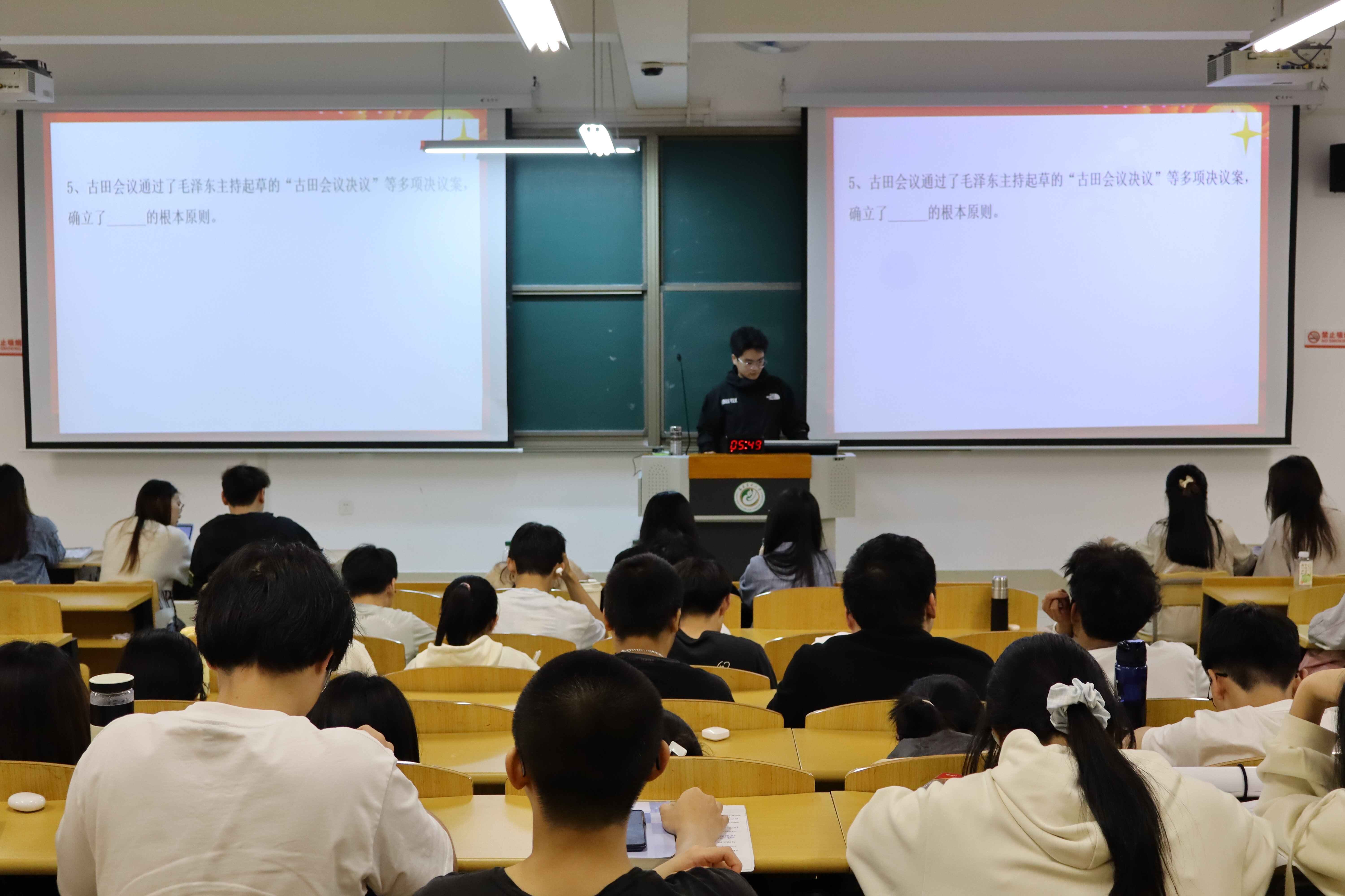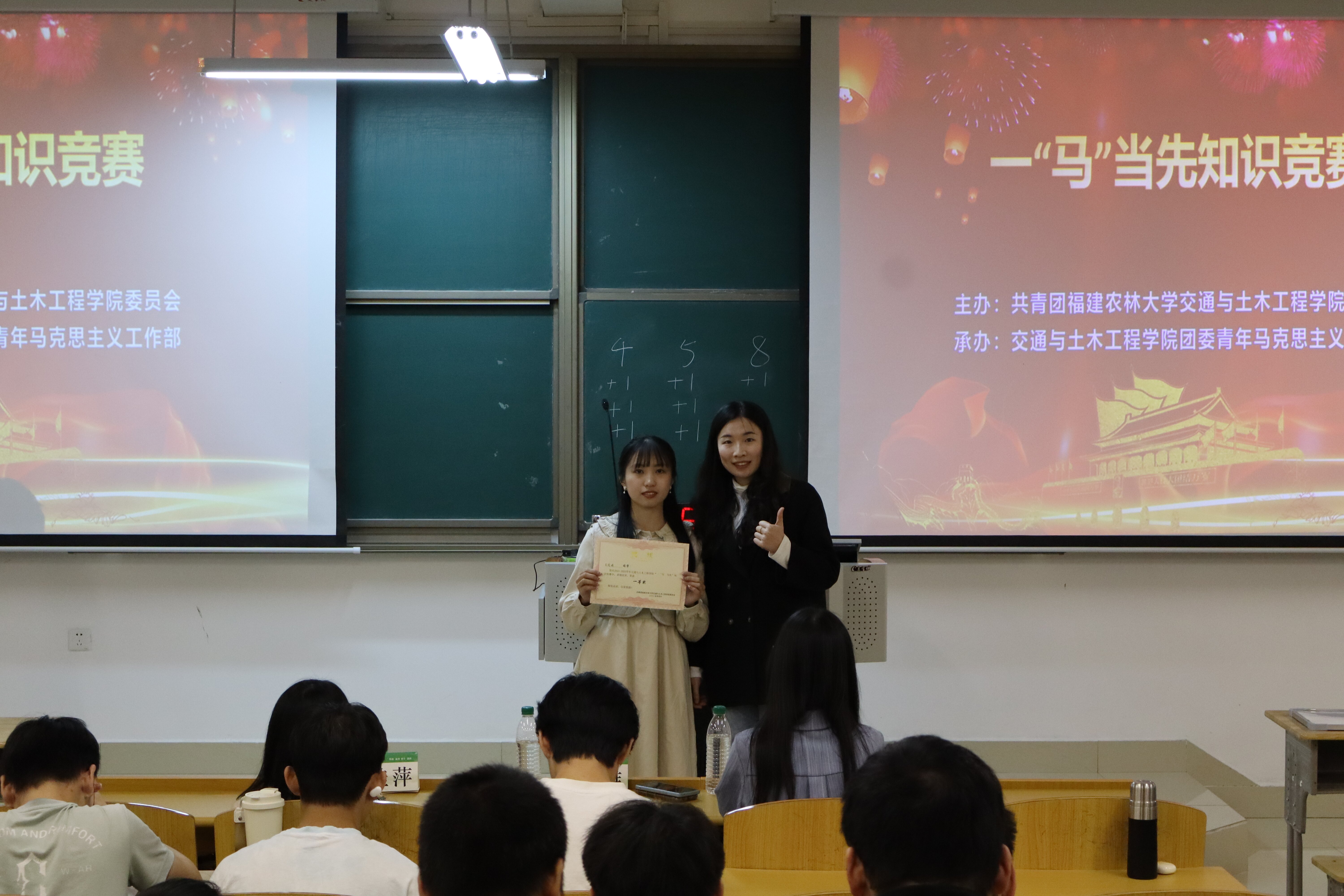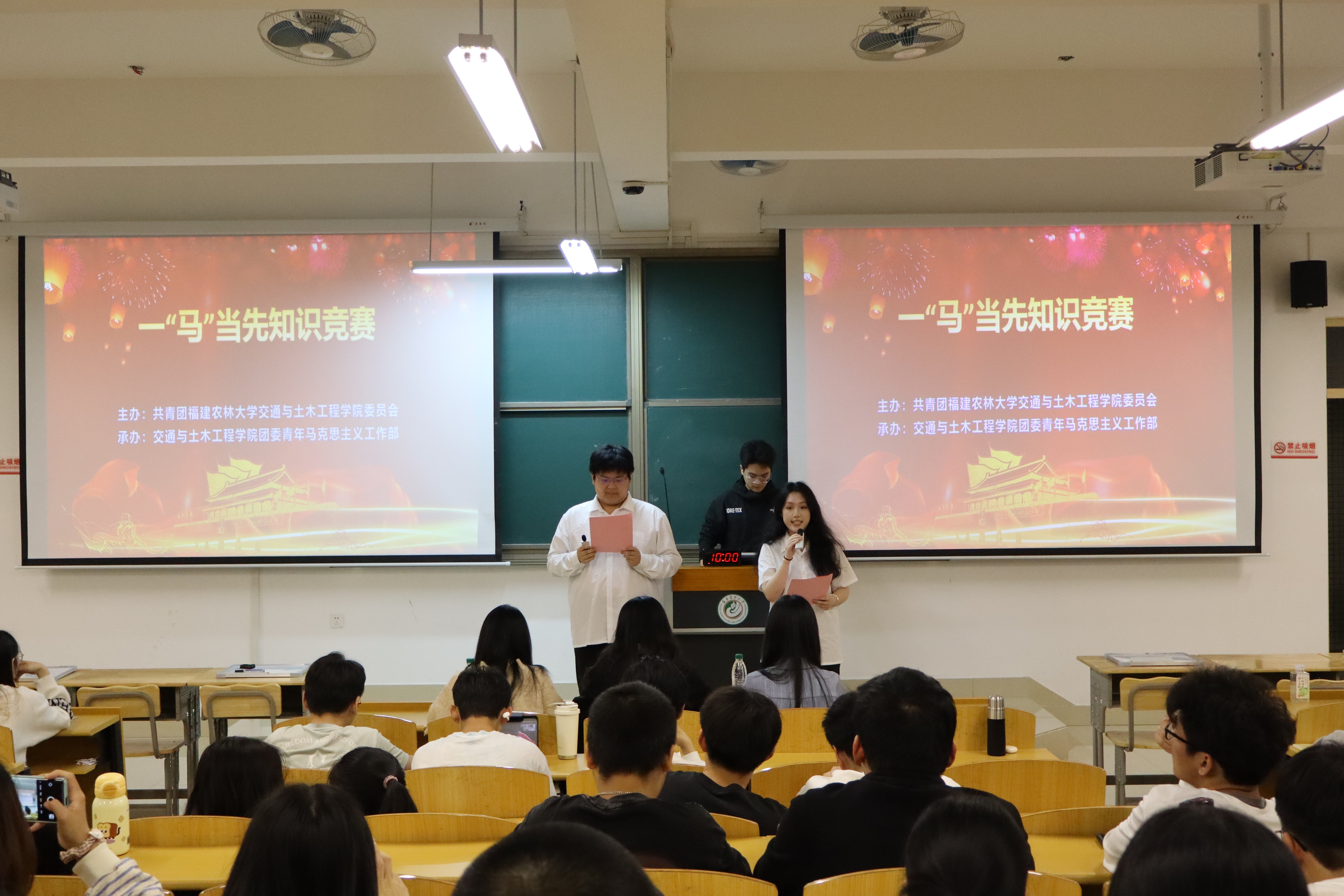 为进一步激发广大学生的学习热情,让理论学习既有“原味”更添“鲜味”,4月27日晚,交通与土木工程学院第五届“一‘马’当先”知识竞赛决赛在旗山教学实验楼209举办。学院第16期青马班班主任黄莉雅,辅导员陈梦婷、潘桂萍,青马班与研习社学员,各年级学生代表共100余人参加活动。