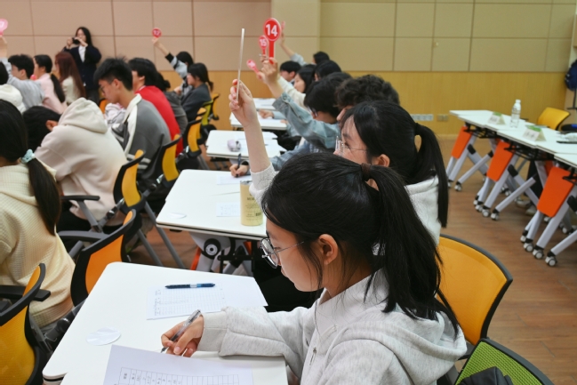 擂台赛中大屏幕倒计时的数字疯狂跳动,思维在知识迷宫中高速穿梭,擂台上的选手在紧张的氛围中沉稳作答,比分牌上的数字不断刷新,台下的观众也不时传来一阵阵掌声。