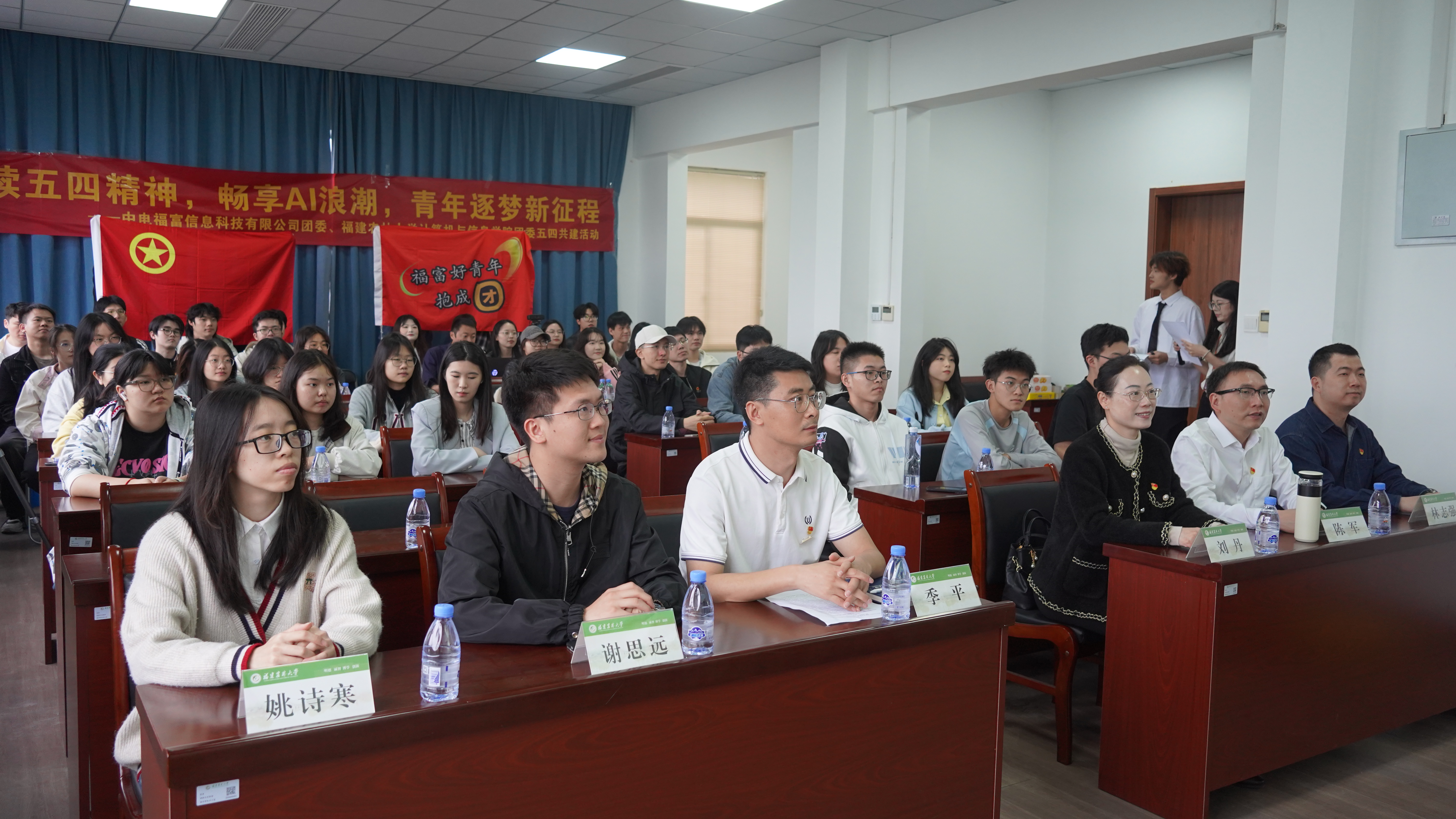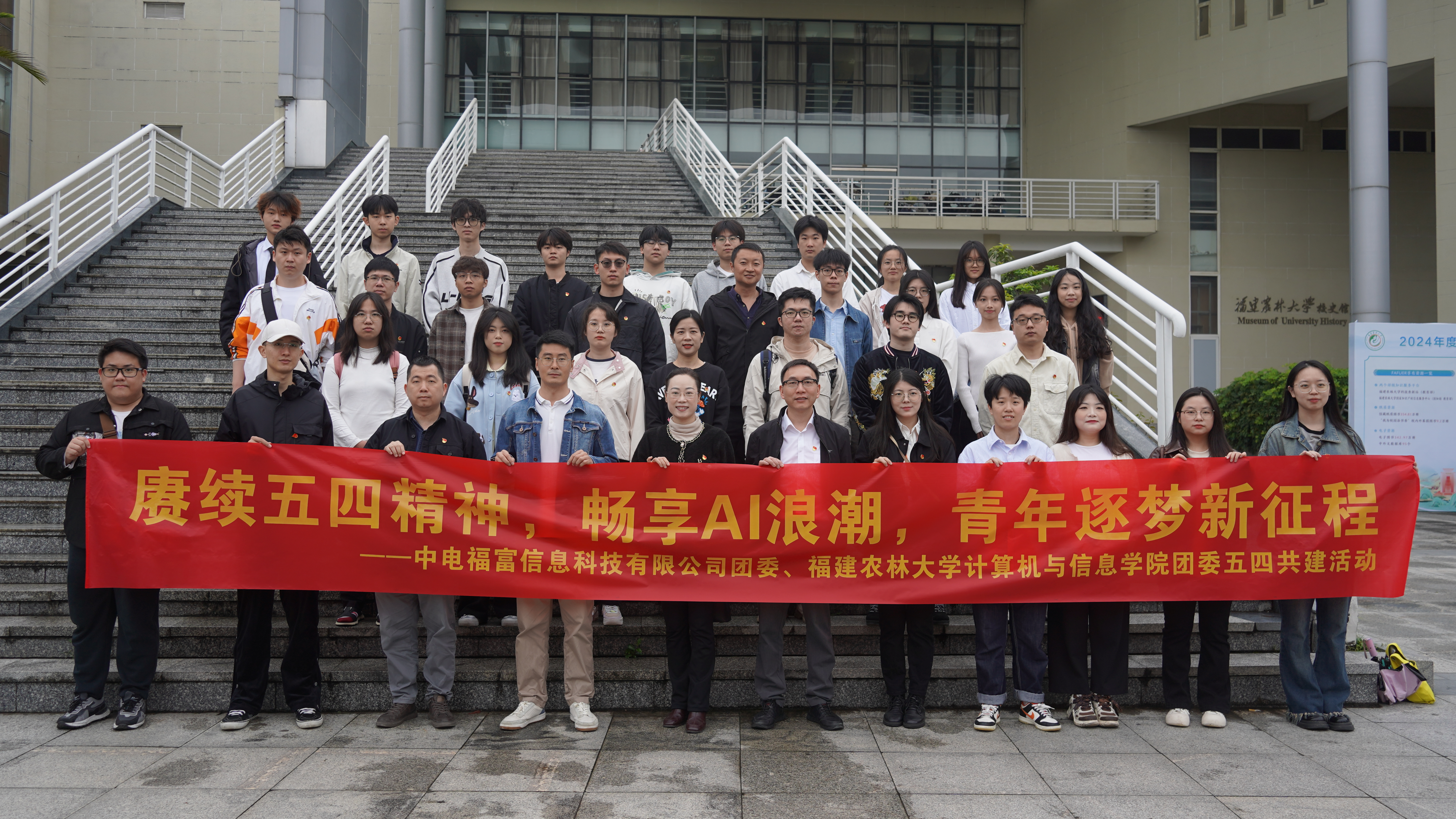4月26日下午,计算机与信息学院联合中电福富信息科技有限公司于农机楼6层会议室开展“赓续五四精神 畅享AI浪潮 青年逐梦新征程”主题青年读书会暨团建翼联活动。院企双方团员青年总计50余人参加。