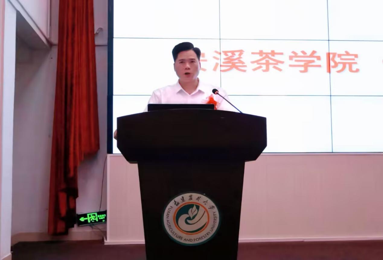 黄成茂在发言中表示,学院自创办以来,始终以校训统筹“茶文化、茶产业、茶科技”发展,在人才培养、科研、社会服务等方面有着显著的成果,为茶产业的发展提供了技术支持和人才保障。在开辟校企合作新领域的过程中,组建了安溪茶学院、数字经济学院、光电产业学院,形成学科丰富、本硕博贯通的培养体系。他指出,学院重视女性在茶遗产传承中的作用,在2019年指导成立安溪铁观音女茶师非遗传习所,推动女性茶师在非遗保护与创新中发挥更加核心的作用。最后,他希望本次活动作为跨界交流的平台,能汇聚各方力量,共同探讨非遗传承的现代诠释与跨界赋能,推动茶文化与科技、设计、旅游等领域的深度融合,实现茶文化产业的可持续发展。