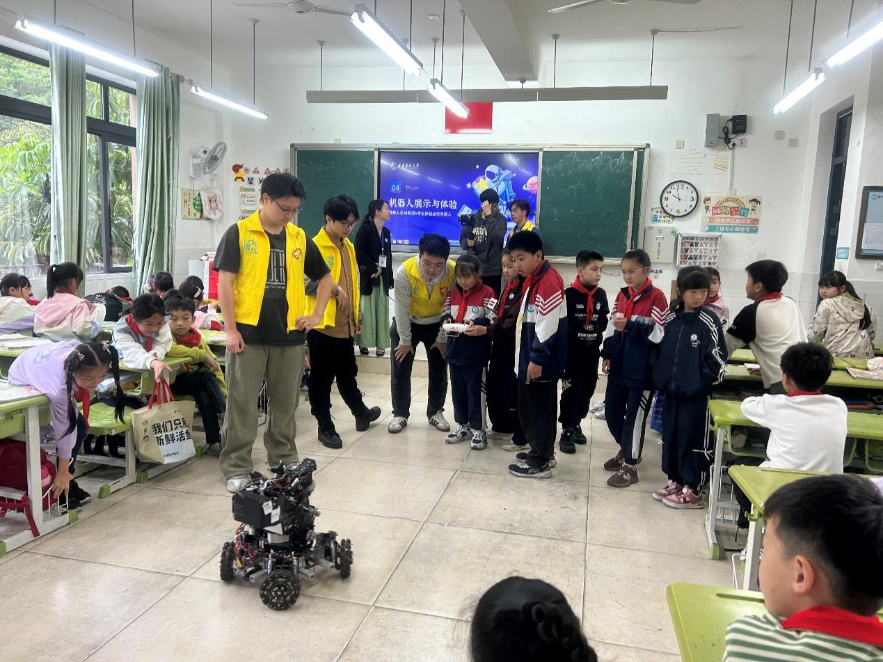 为弘扬科学精神,激发青少年创新热情,近日,机电工程学院爱帮义务维修队携手071战队走进开云网页版附属小学,开展了一场别开生面的“科学小课堂,童心大世界”科普活动。通过科普知识讲解、机器人展示、互动教学与实践操作等形式,将科技知识送进小学课堂,在孩子们心中播撒科技创新的种子。
