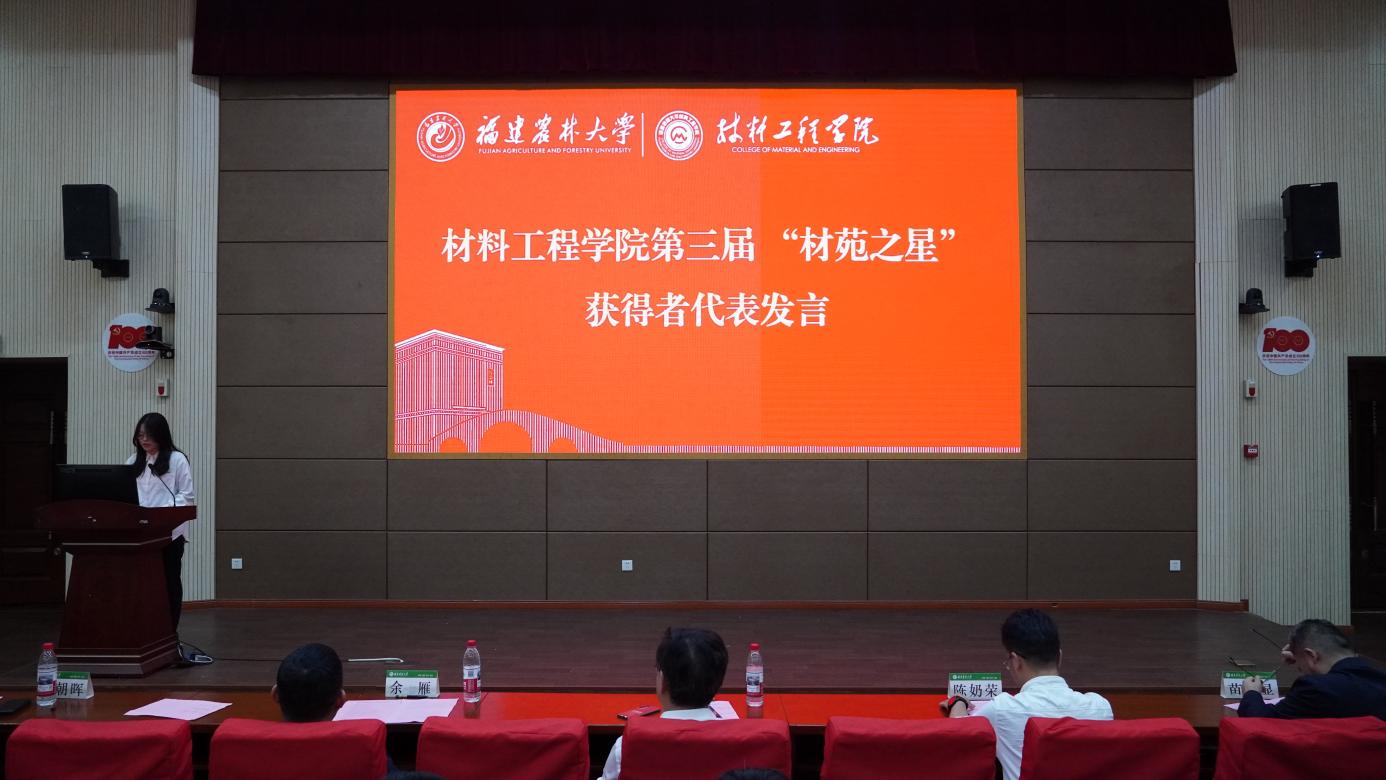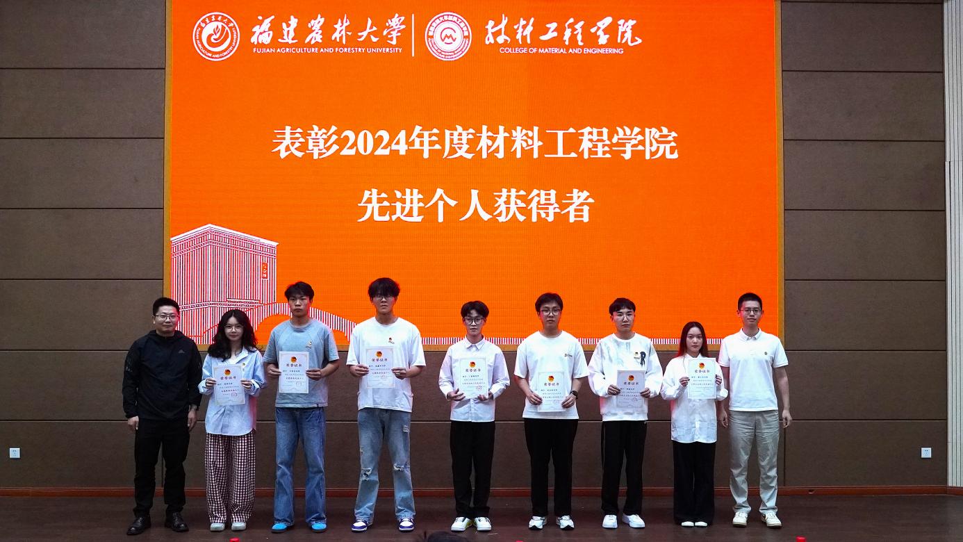 大会在庄严的国歌声中拉开帷幕。会上,郭朝晖宣读“材苑之星”表彰名单,李轶男、李庚辰、庄垚焱、林振雄荣获材料工程学院第三届“材苑之星”称号。陈奶荣、苗庆显分别宣读了2024年度勉学育英奖助学金(含生物质基材料研究生奖学金)表彰名单及材料工程学院2024年度共青团工作先进表彰名单。随后,学院领导为受表彰的先进集体与先进个人颁奖。