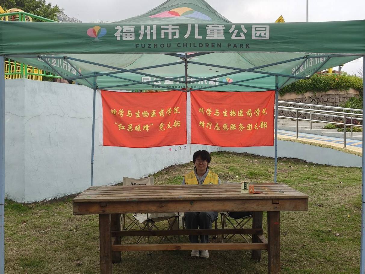 4月5-6日,蜂学与生物医药学院“红巢暖蜂”党支部与蜂疗志愿服务团支部组织同学前往福州市儿童公园自然部落开展蜂疗活动,宣传蜂学文化,普及蜂疗知识。