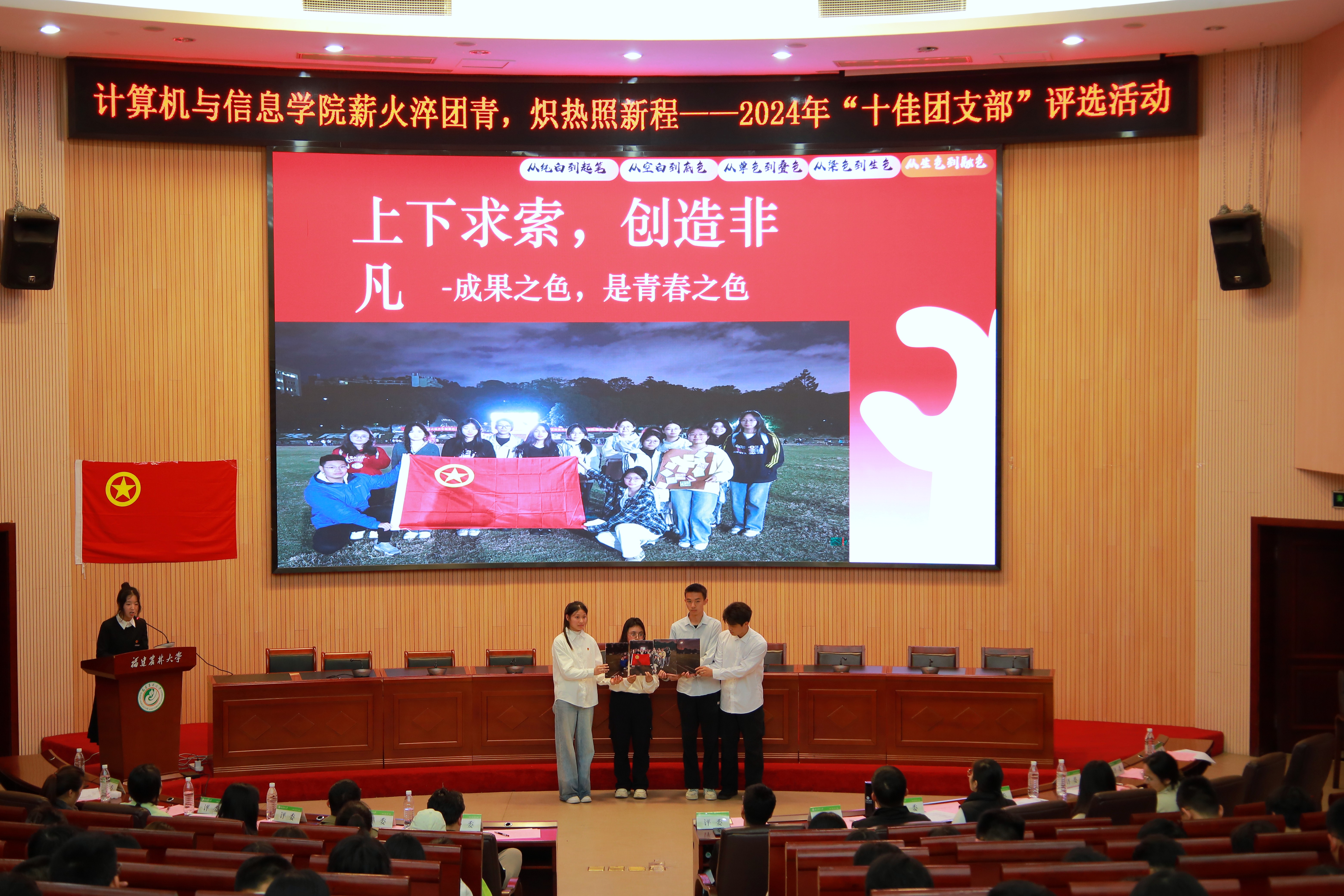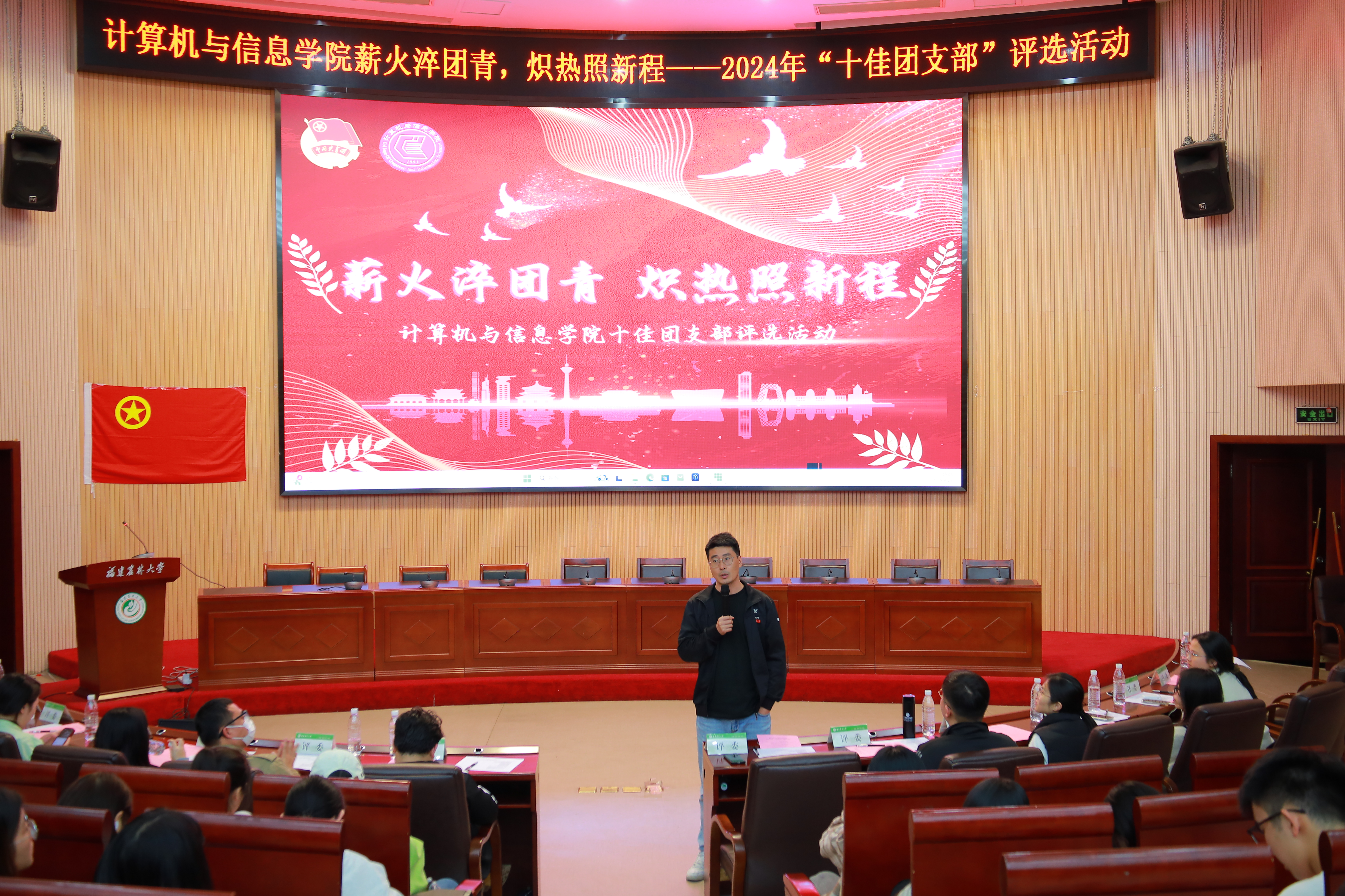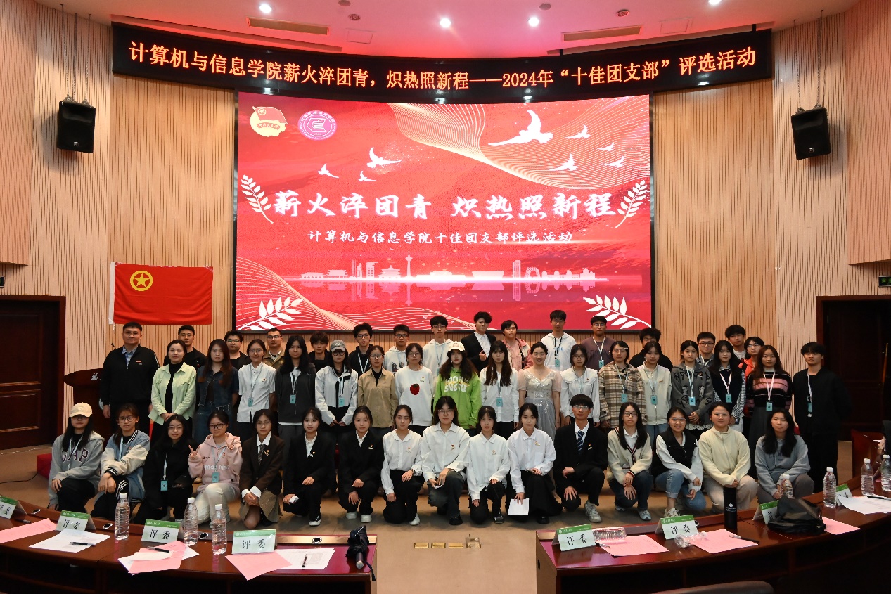 4月25日晚,计算机与信息学院在博学报告厅举办“薪火淬团青,炽热照新程”——2024年“十佳团支部”评选活动。学院团委副书记季平及学院全体辅导员担任本次活动评委,各团支部代表共计300余人参加。