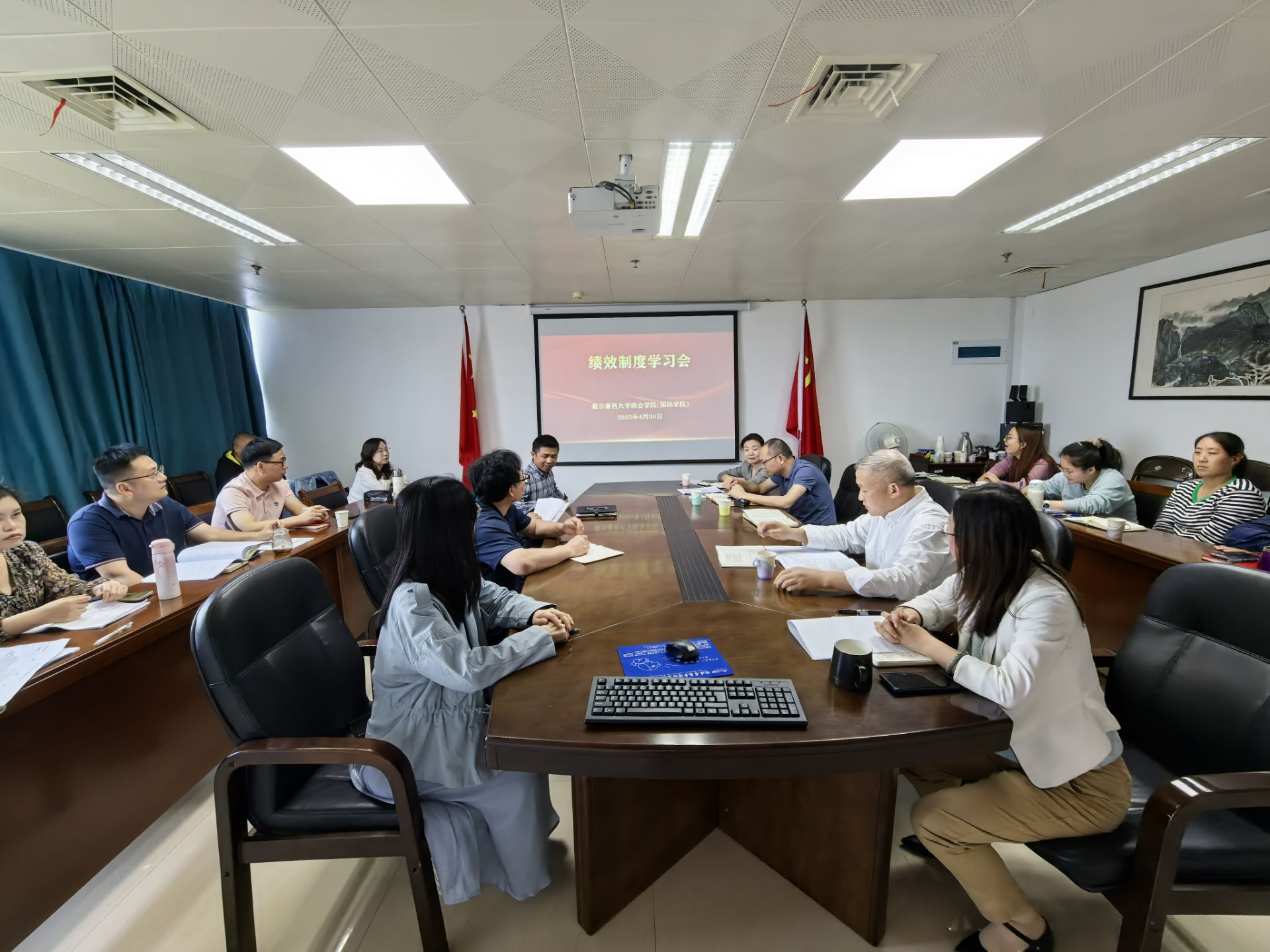 为切实落实学校巡察整改工作要求,2025年4月30日,戴尔豪西大学联合学院(国际学院)组织召开绩效制度学习会。学院党政领导班子、各系部负责人及行政科室工作人员参加此次会议。