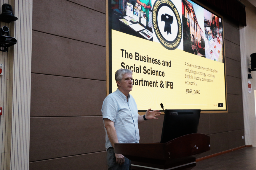 为持续推进中外合作办学高质量发展,助力学生国际化视野与专业能力提升,5月7日下午,加拿大戴尔豪西大学农业校区校长Heather Bruce和农经系主任Chris Hartt为戴尔豪西大学联合学院2024级中外合作办学专业学生作专题讲座。戴尔豪西大学联合学院(国际学院)副院长(主持工作)吕健,戴尔豪西大学联合学院外方副院长牛海波、外方项目主管马寅华、相关专业师生代表、教学管理人员及辅导员共200余人参与活动。讲座由戴尔豪西大学联合学院(国际学院)副院长刘丽敏主持。