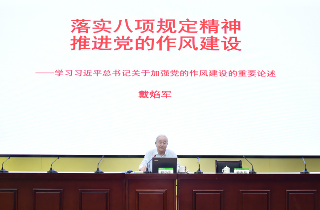 戴焰军以“落实八项规定精神,推进党的作风建设”为题,紧紧围绕学习习近平总书记关于加强党的作风建设的重要论述,深刻阐释了作风的含义和主要特征、作风建设的重要意义、作风建设的要求和举措、作风建设中要处理好的几种关系等。报告理论联系实际,旁征博引,深入浅出,既有党的建设重要思想的理论高度,又有落实中央八项规定精神的理性思考,赢得了现场师生热烈的掌声。