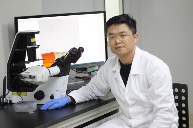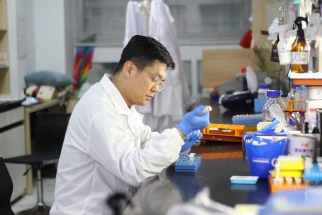 图为林文伟在实验室