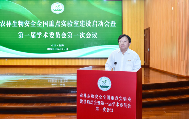 赖海榕在致辞中指出,农林生物安全,是关乎国家粮食安全、生态安全和人民健康的“国之大者”。学校将紧紧围绕国家战略需求,同中国农业大学、南京农业大学密切协作,以“高起点规划、高标准建设、高效率运行”为原则,加快推进各项工作。一是聚力核心技术攻关。围绕松材线虫、柑橘黄龙病、红火蚁等重大病虫害防控,加快研发高效绿色防治技术,加强作物抗逆基因挖掘与利用,建设外来物种入侵智能监测网络。二是深化协同创新机制。推动农学与信息科学、生态学等交叉融合,深化与科研院所、龙头企业的合作,加速技术落地应用。三是强化人才梯队建设。实施“高层次人才引育计划”,设立“开放课题基金”,支持国内外团队联合攻关,赋予团队更大技术路线决策权、经费使用自主权。四是拓展国际合作网络。积极参与全球生物安全治理,与国际顶尖实验室共建联合研究中心,主导或参与制定生物安全国际标准,推动中国技术、中国方案走向世界。