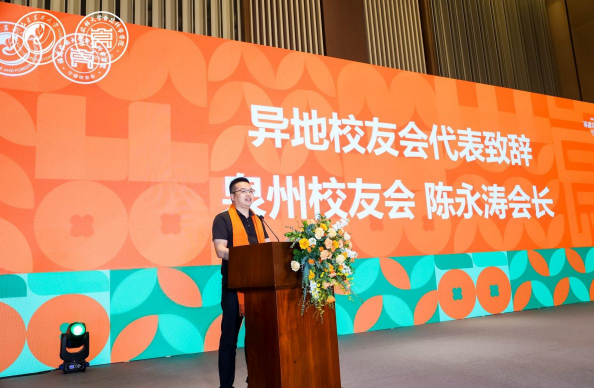 食品科学学院泉州校友会会长陈永涛代表异地校友会讲话,祝贺宁德校友会的成立,并表示泉州与宁德同为福建经济发展重地,希望今后兄弟校友会能携手共进,以开放融合延续母校精神。