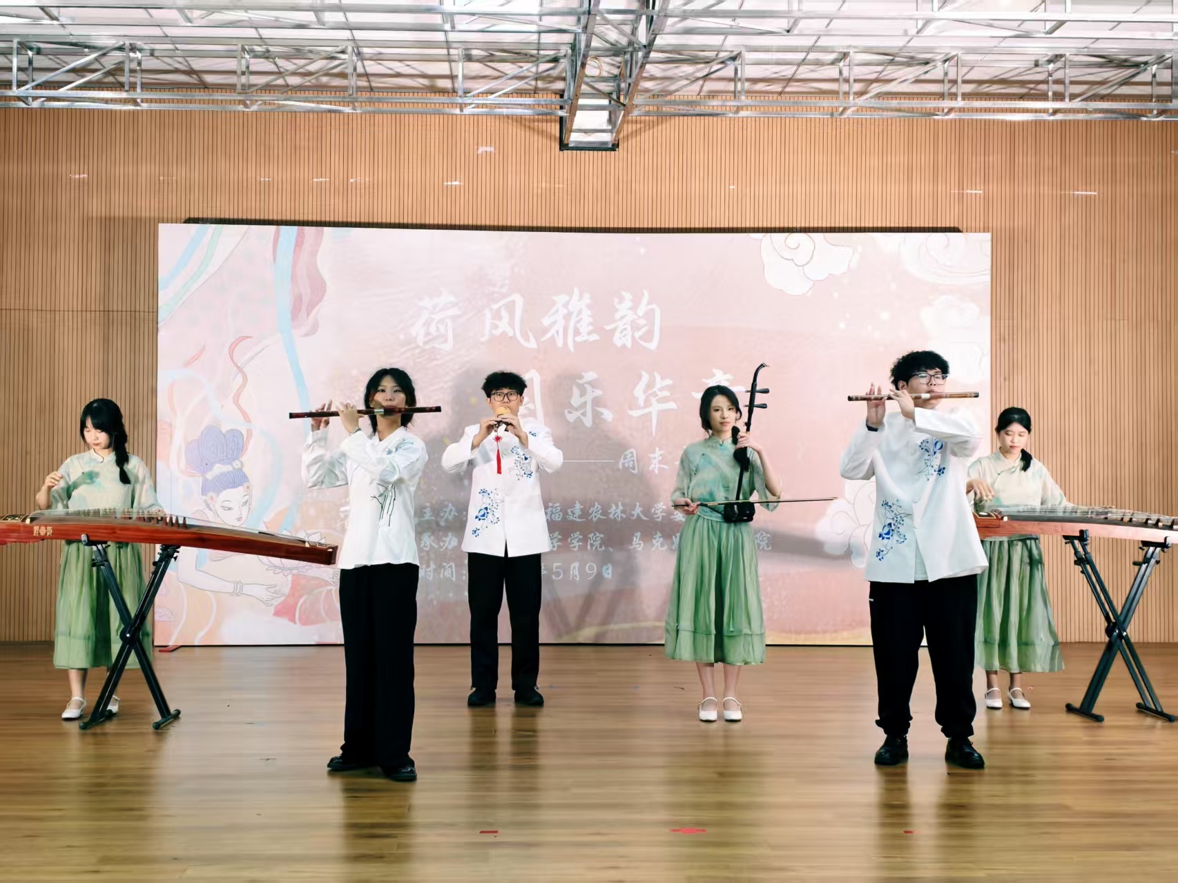 活动以激昂的鼓乐表演拉开帷幕,以南音选段表演为特色,配合悠扬动人的器乐演奏、深情款款的独唱、激情四溢的古风朗诵、柔美优雅的民族舞以及和谐动人的对唱,营造出浓厚的古典氛围。在古风音乐的海洋中,大家尽情释放压力,享受周末的惬意时光,共同畅想未来的美好篇章。