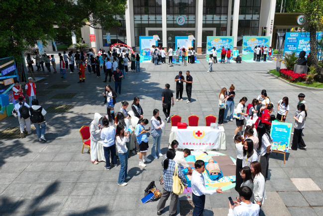 本次活动,通过开展防灾减灾主题表演、应急疏散逃生演练、防灾减灾主题科普展等活动,为全校师生带来一场生动实用的安全知识教育。我校资源与环境学院师生作实战化地震逃生演练。福州市消防救援支队的搜救犬表演了按指令完成坐、立、站等动作。校大学生艺术团Bbox&rap队带来原创节目《避震指南》。福州市“防灾减灾科普讲解大赛”获奖选手代表陈苏带来《东西塔的抗震秘方》主题演讲。一个个主题鲜明的节目为师生们上了一堂生动的科普课。在活动现场,校红十字会的志愿者们和省麒麟减防灾救援服务中心队员们,现场开展AED教学、海姆立克教学、包扎教学等应急救护知识技能演示;福州市消防救援支队空勤基地带来了“消防无人机战队”;还有防灾减灾主题定向越野等沉浸式活动,吸引了不少师生参与。