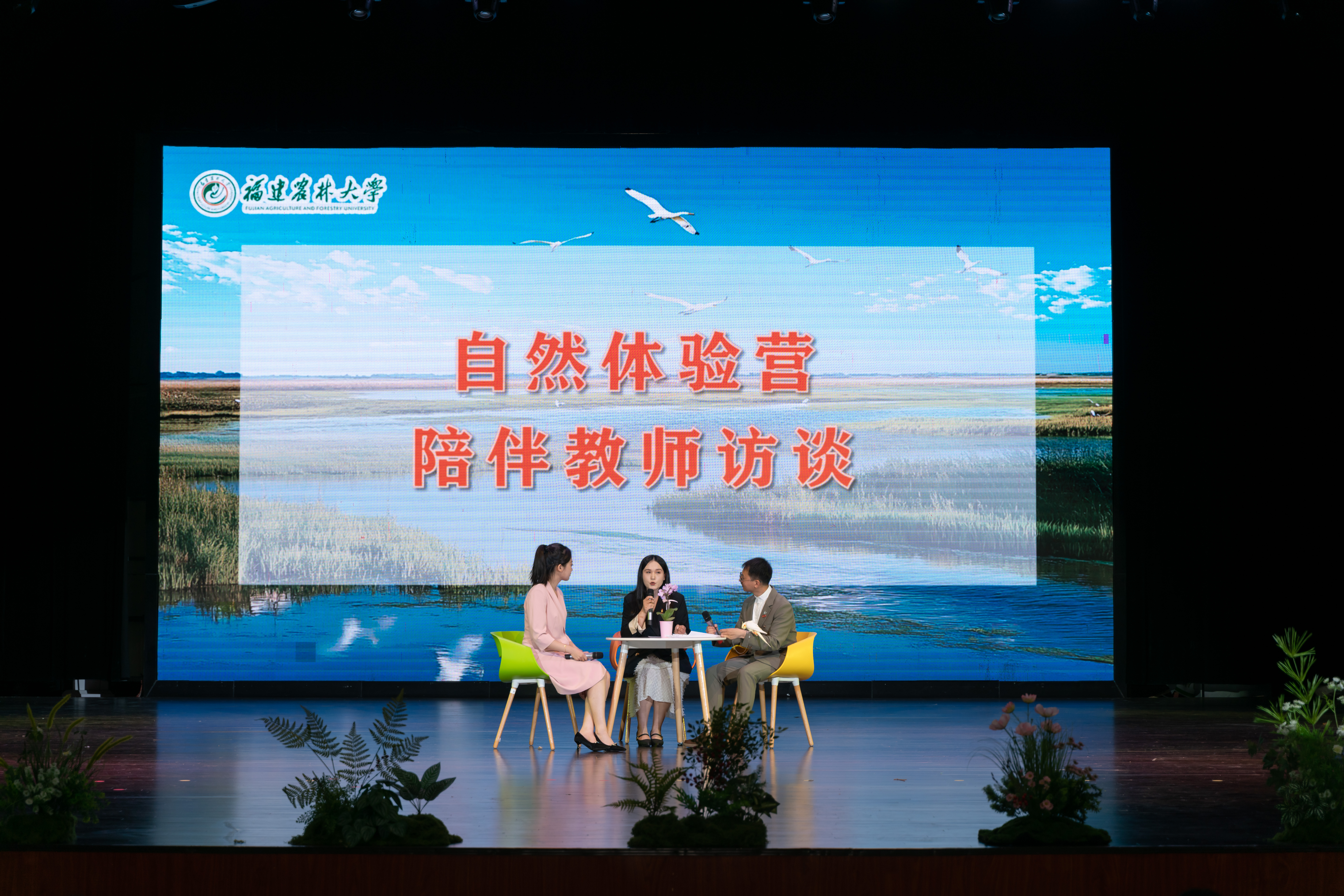 在活动展演环节,资源与环境学院龚鑫、未来技术学院陈敏玉和蜂学与生物医药学院余宝嘉三位优秀心理骨干代表分享了他们在学生心理工作中的经验与启示。植物保护学院邱嘉林同学以《逆境中成长:感恩与奋斗的力量》为题,深情讲述了自己从闽北山区贫困家庭考入大学,在逆境中成长蜕变的感人故事。歌曲《我们都一样》传递出青春成长中的坚定与无畏,将现场氛围推向高潮。在“自然体验营”风采展演中,各学院营员代表身着融合自然元素的服装,展现了自然之美对心灵的滋养与治愈力量。自然体验营陪伴教师曾焕接、希仁阿依分享了在引导学生亲近自然、释放压力、增强心理韧性的温馨故事。活动展演在全场师生共同参与的心理健康操中落下帷幕,整场活动充分展现了福农学子积极向上的精神风貌和朝气蓬勃的昂扬姿态。