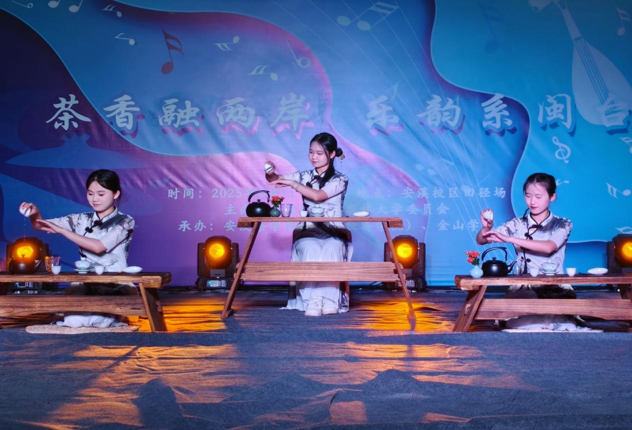临近尾声,《追赶春天的人》以铿锵旋律感染全场,唱出青春满怀憧憬与希望的模样;一曲《身骑白马》将传统戏曲与流行音乐的巧妙碰撞,令人耳目一新。最后,音乐汇在茶艺表演《茶香两岸》中圆满落幕,表演者身着传统服饰,向观众展示茶叶冲泡、斟茶等工序,将两岸同胞同根同源的文化底蕴徐徐展现。