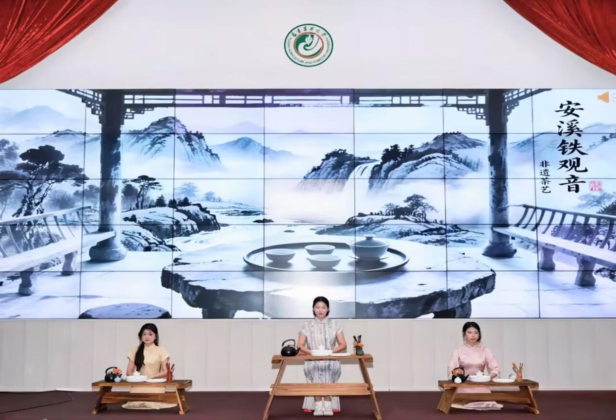 活动伊始,安溪茶学院(数字经济学院)绿苑艺术团民舞队带来舞蹈《霍元甲》,舞者执花轻移,灵动的舞姿展示青春的活力与风采。